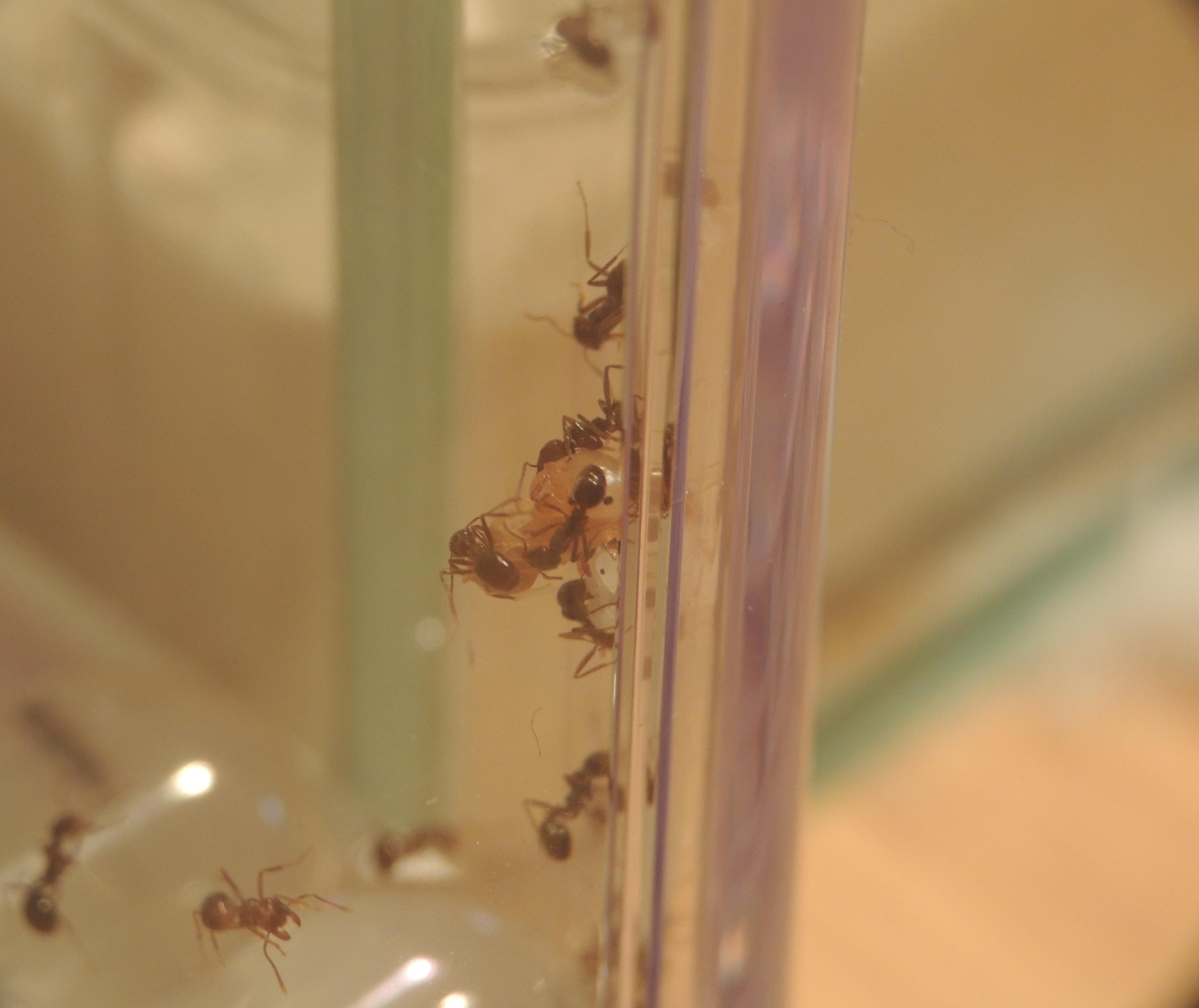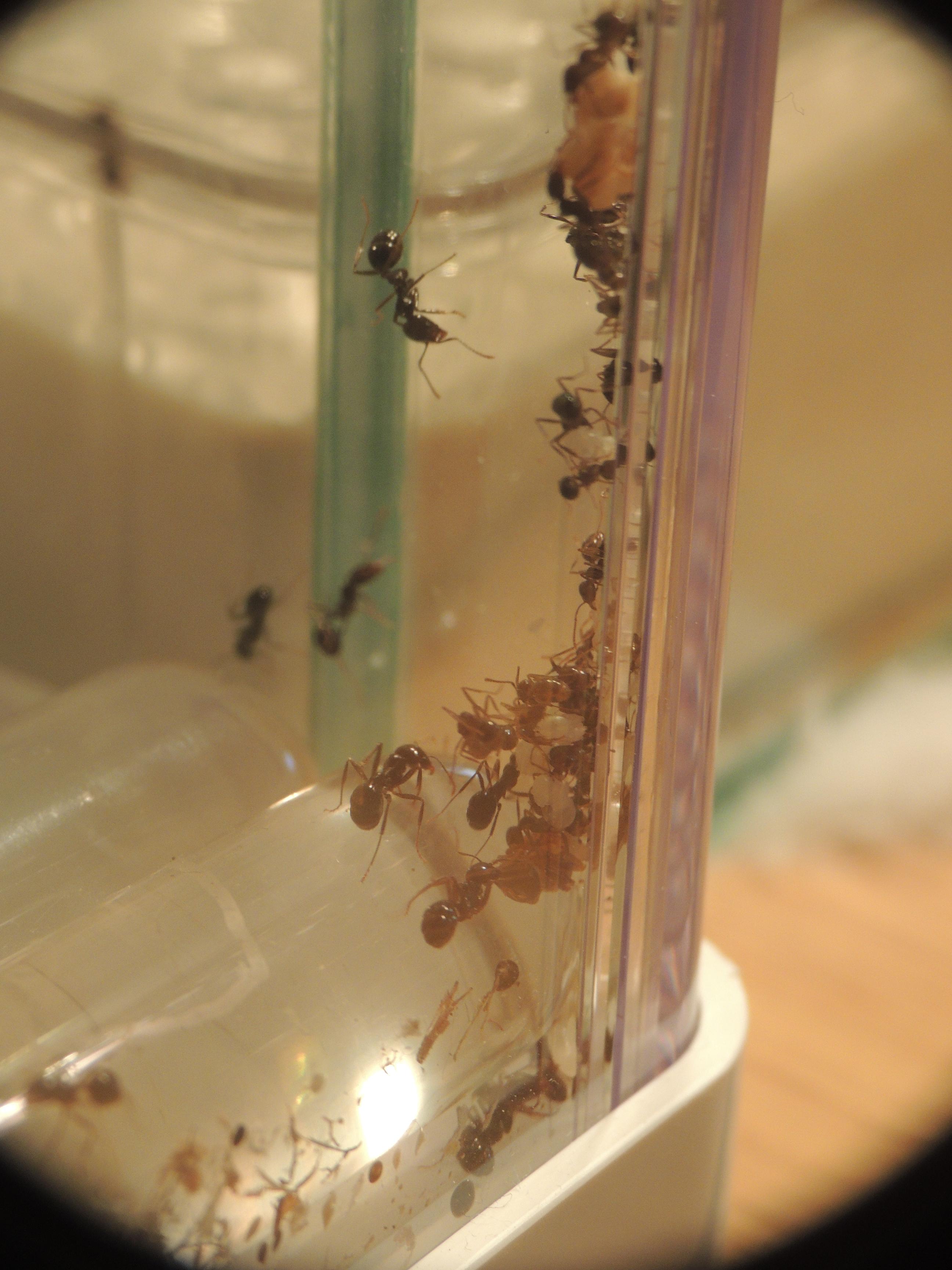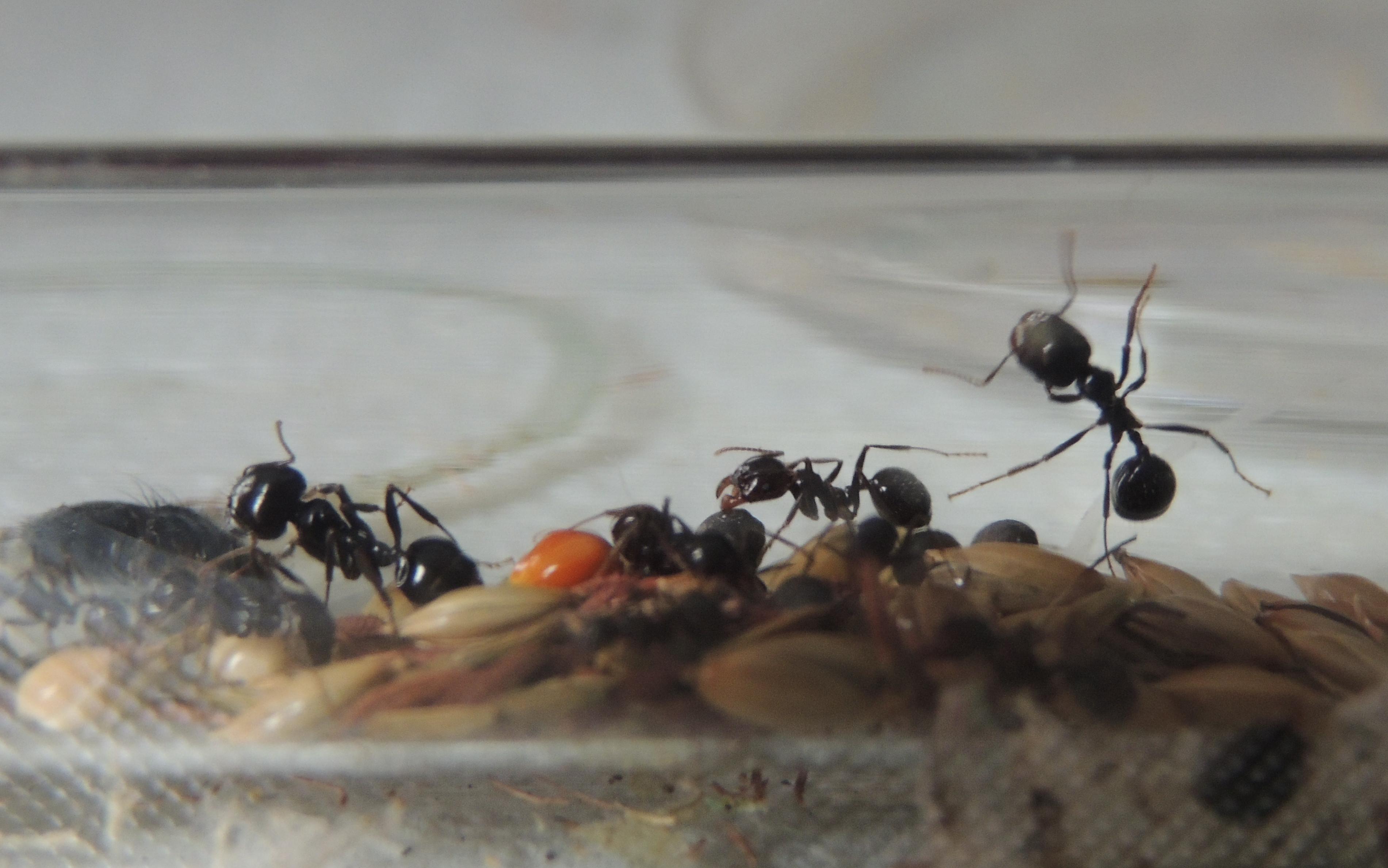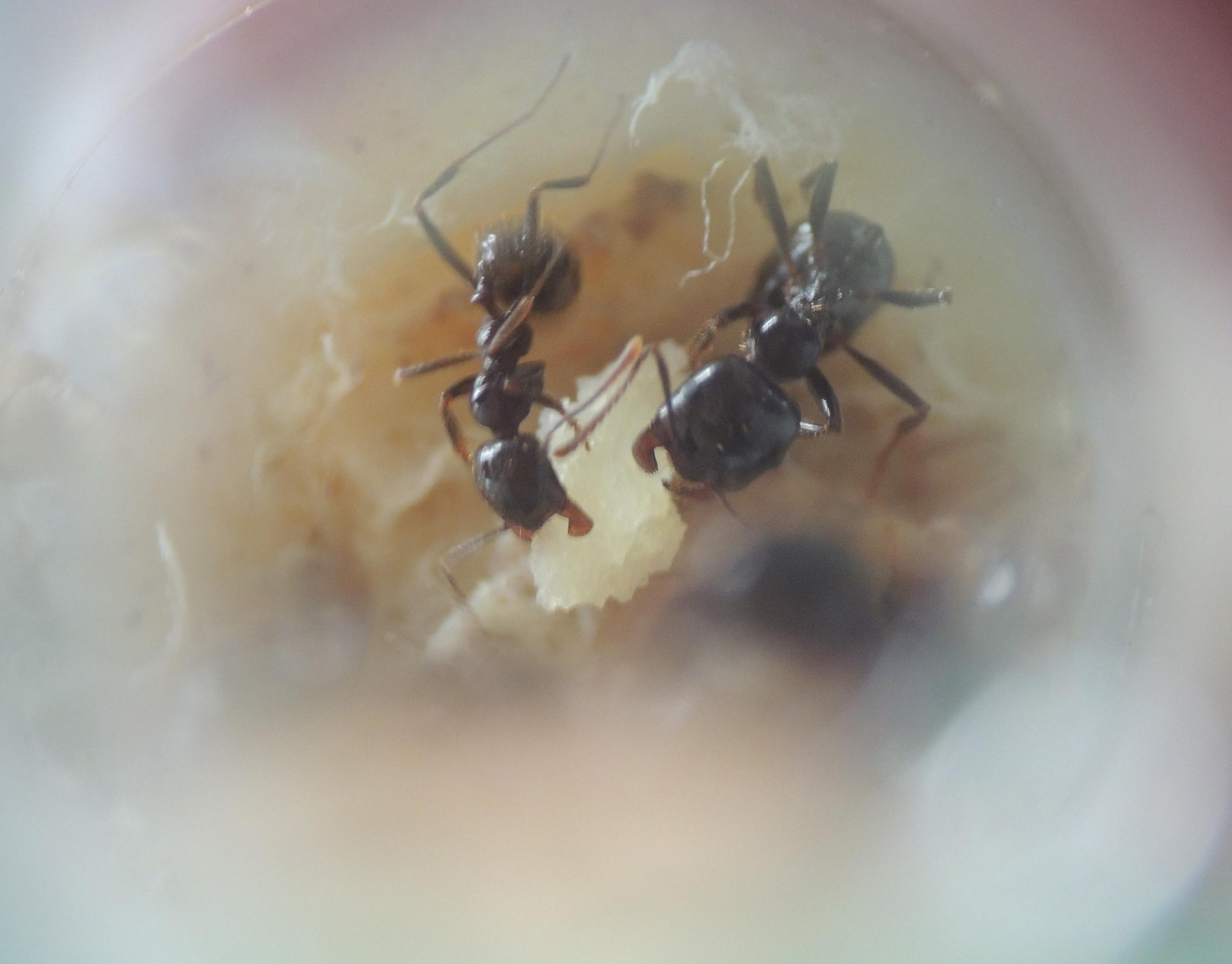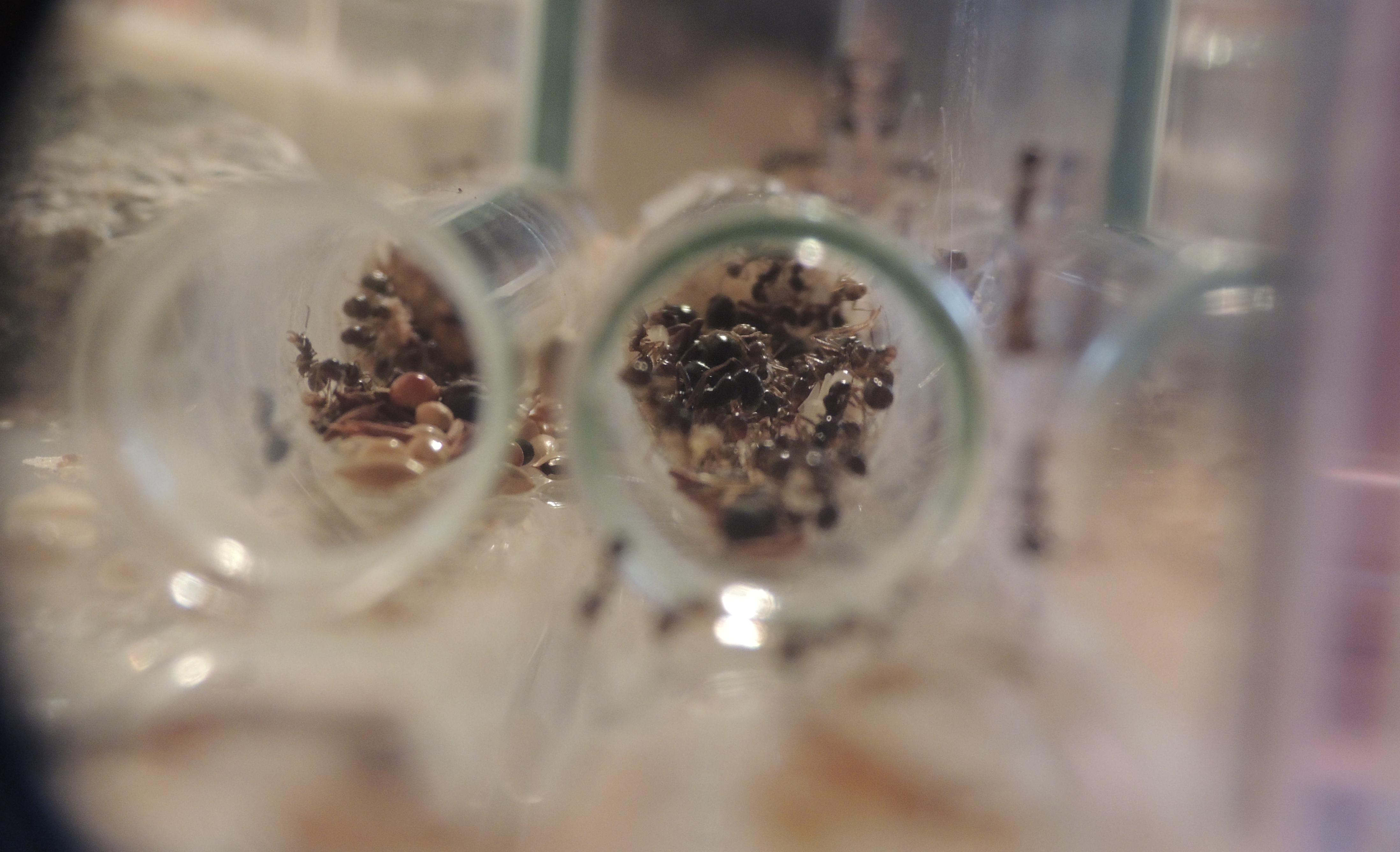 Pour la petite histoire, il faut savoir que le genre Messor est parfois moins fragile qu'il n'y parait. Oh nombre de fois que je m'y suis essayé avec M. barbarus (3 fois, pour être exact) : acariens, température, hygrométrie, tout s'est ligué pour ne jamais les faire survivre hors d'un tube à essais. A dire vrai, je n'ai jamais été fichu de fournir un nid viable à des Messor (étrange me direz vous ? J'en conviens). Cette fondation s’avérait donc être pour moi une avancée significative.