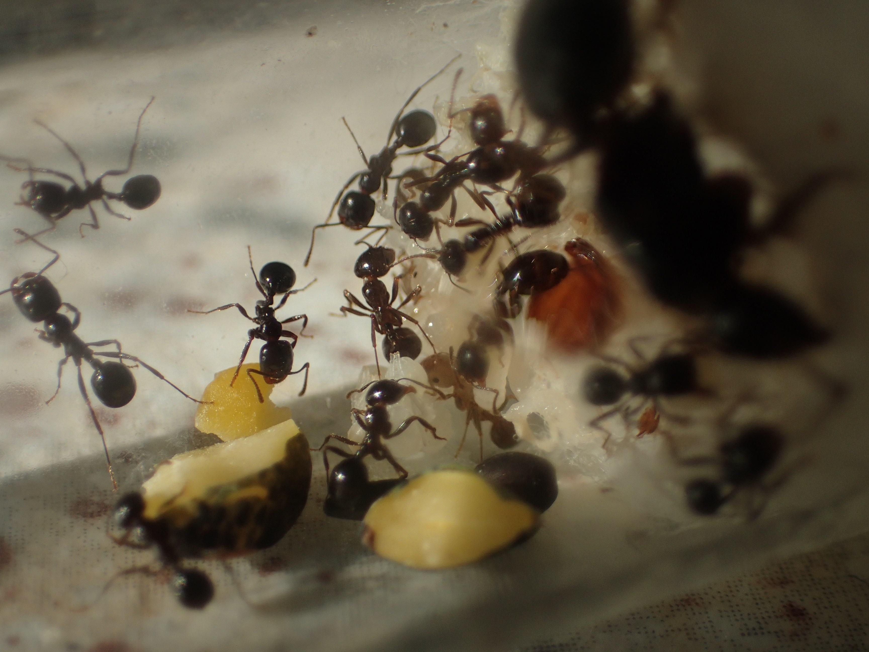 Il n'y a pas encore grand chose à en dire je le crains. La reine est maintenue à température ambiante (~21°C) pour l'instant et s'est permise de casser la croute sur quelques graines préalablement décortiquées. Une mise au froid de trois mois à 10°C s’effectuera dans les jours suivants avant l'étape de fondation proprement dite qui je l'espère, se passera pour le mieux. Beaucoup de calme sera nécessaire pour obtenir un quelconque succès. Des conditions optimales seront proposées par la suite.