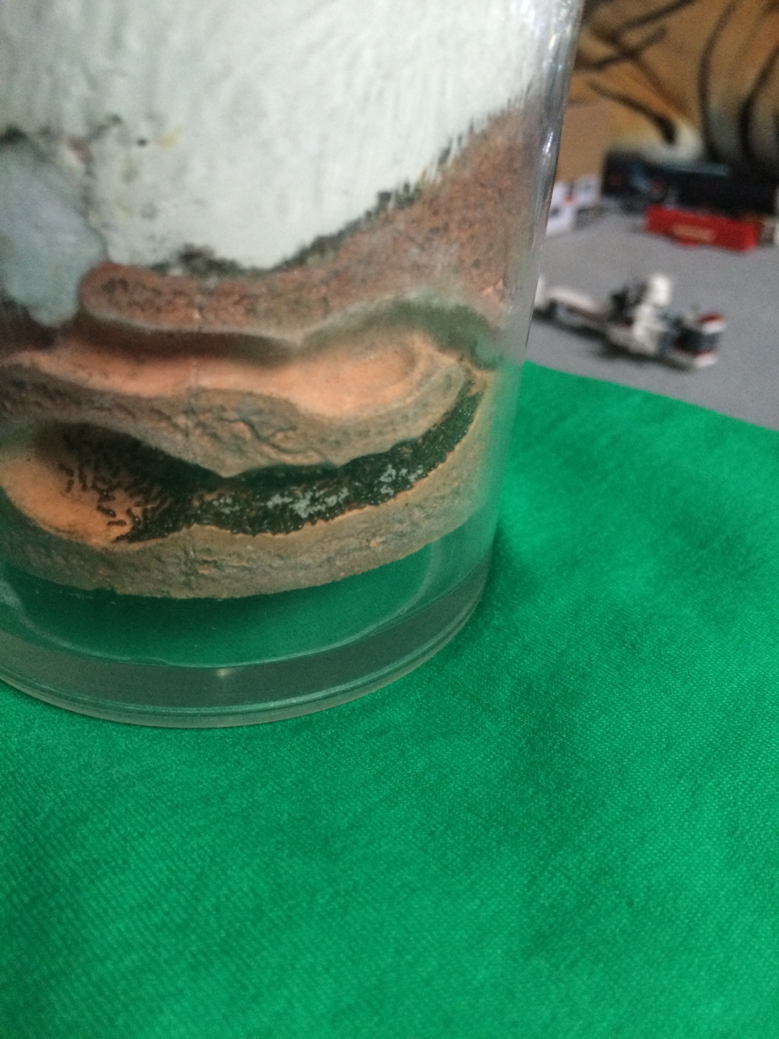 J'ai donc mis les petites, que dis-je les minuscules (1-2mm) Plagiolepis dans une boîte pour qu'elles déménagent d'elles-mêmes dans l'autre tube.