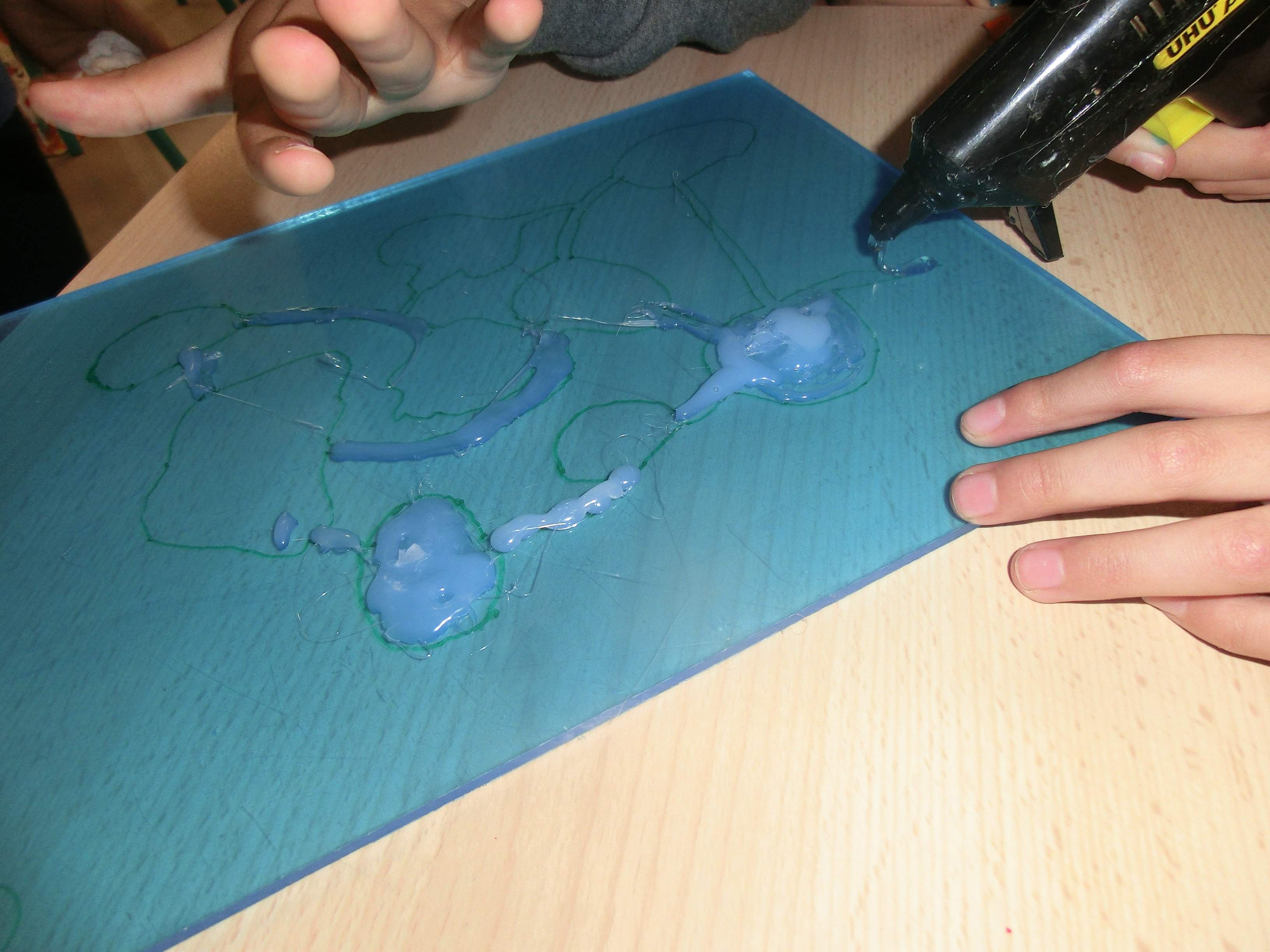 Nous avons ensuite rempli ces galeries dessinées avec de la colle liquide (potentiellement plus facile à enlever que la pâte à modeler.