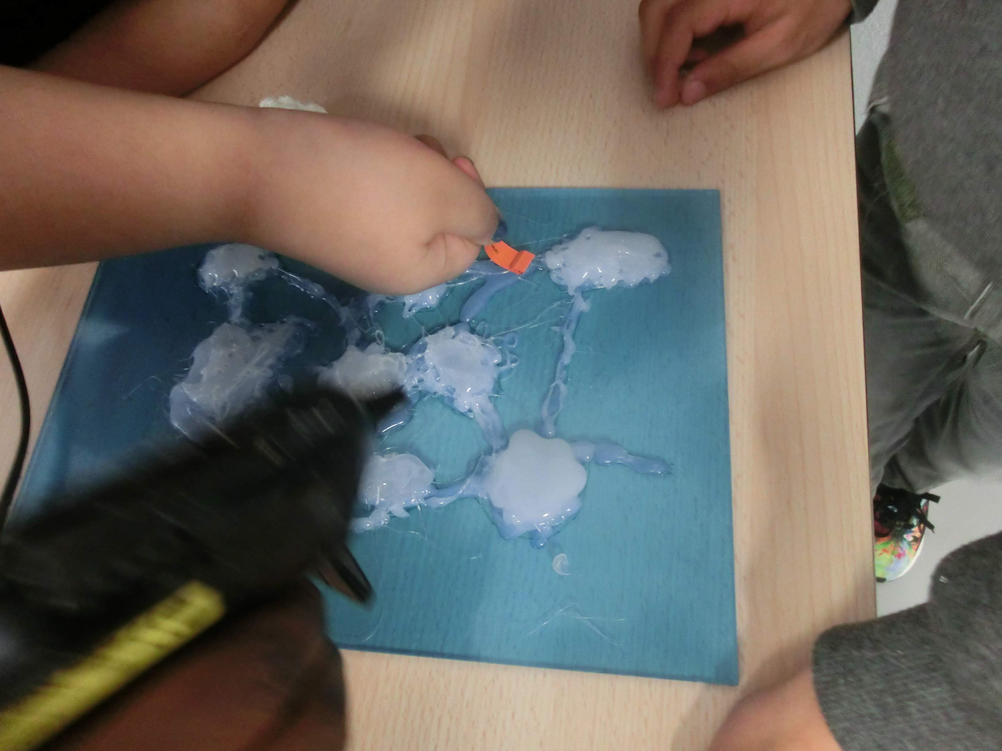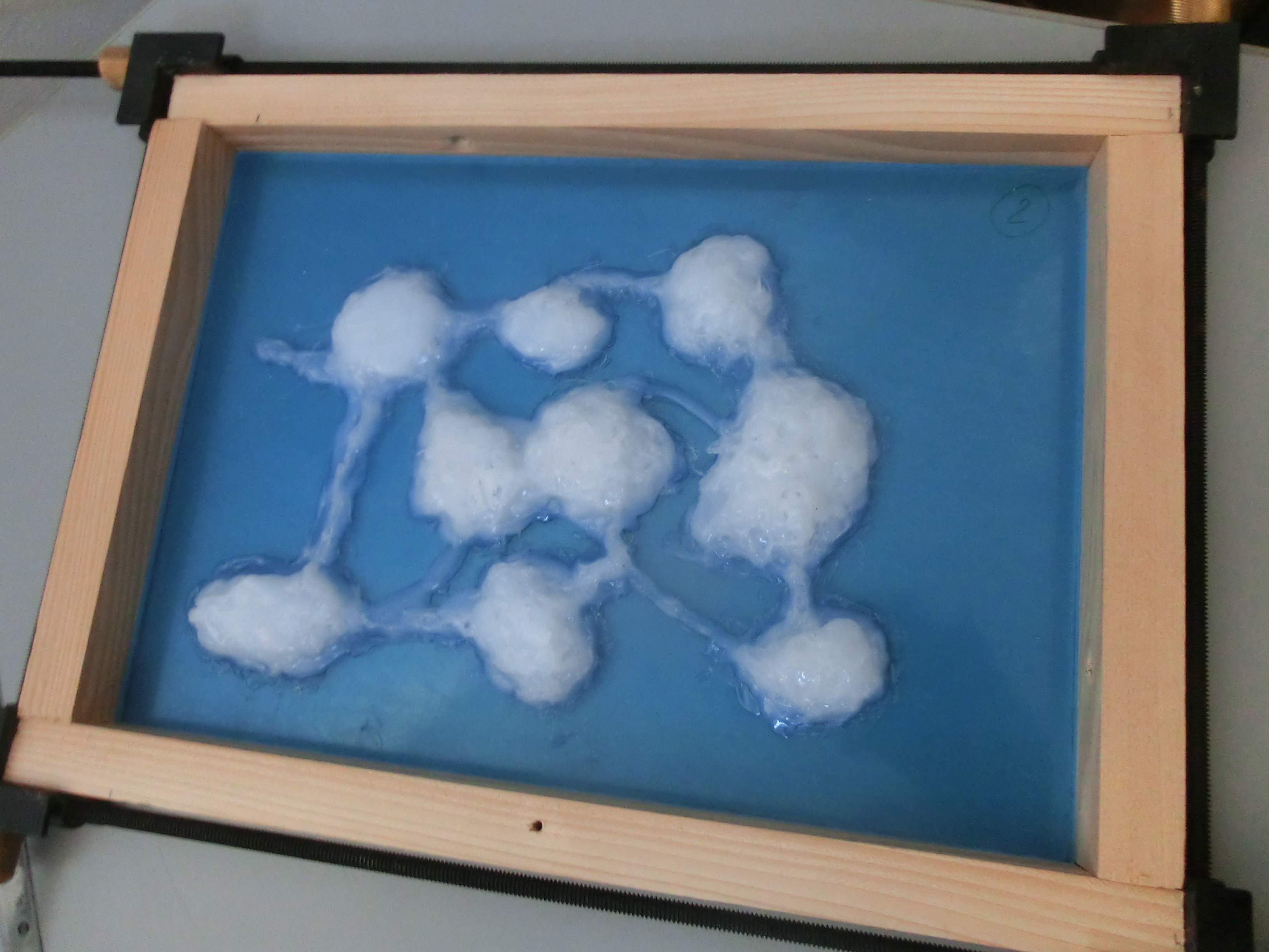 Nous avons effectué un moulage de plâtre en utilisant de la colle pour former les galeries.