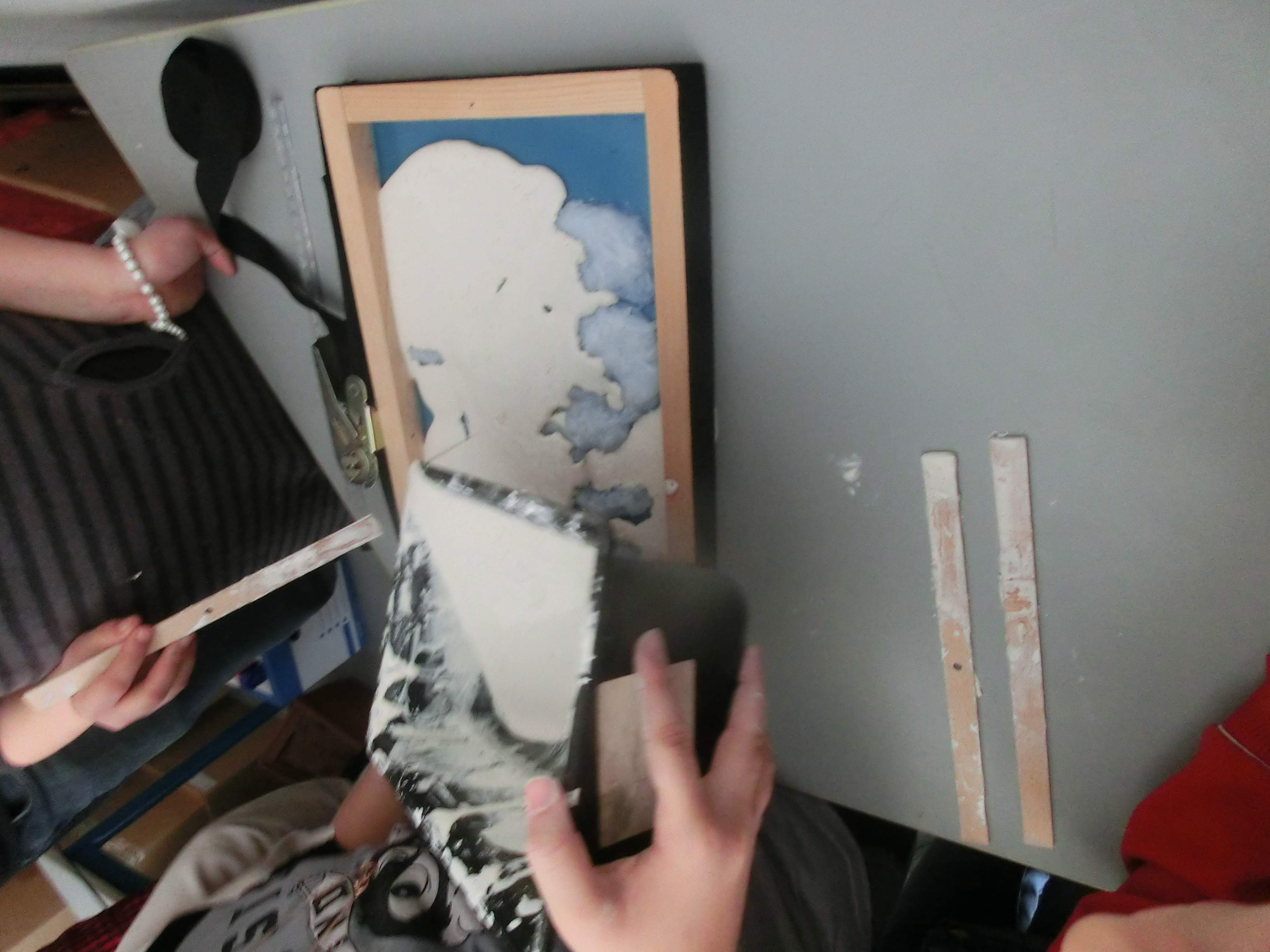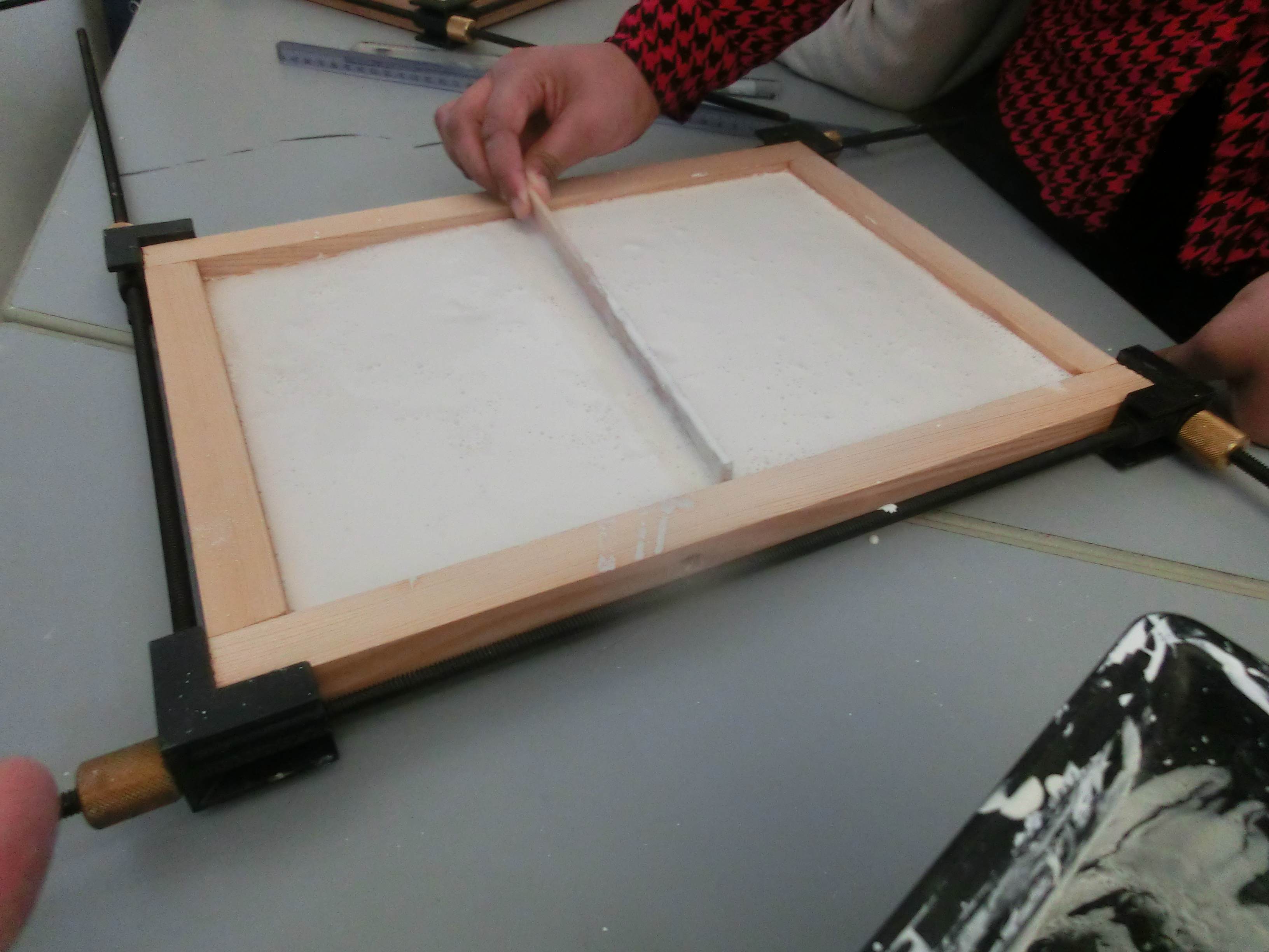 Nous versons ensuite le mélange plâtre/eau dans le cadre.