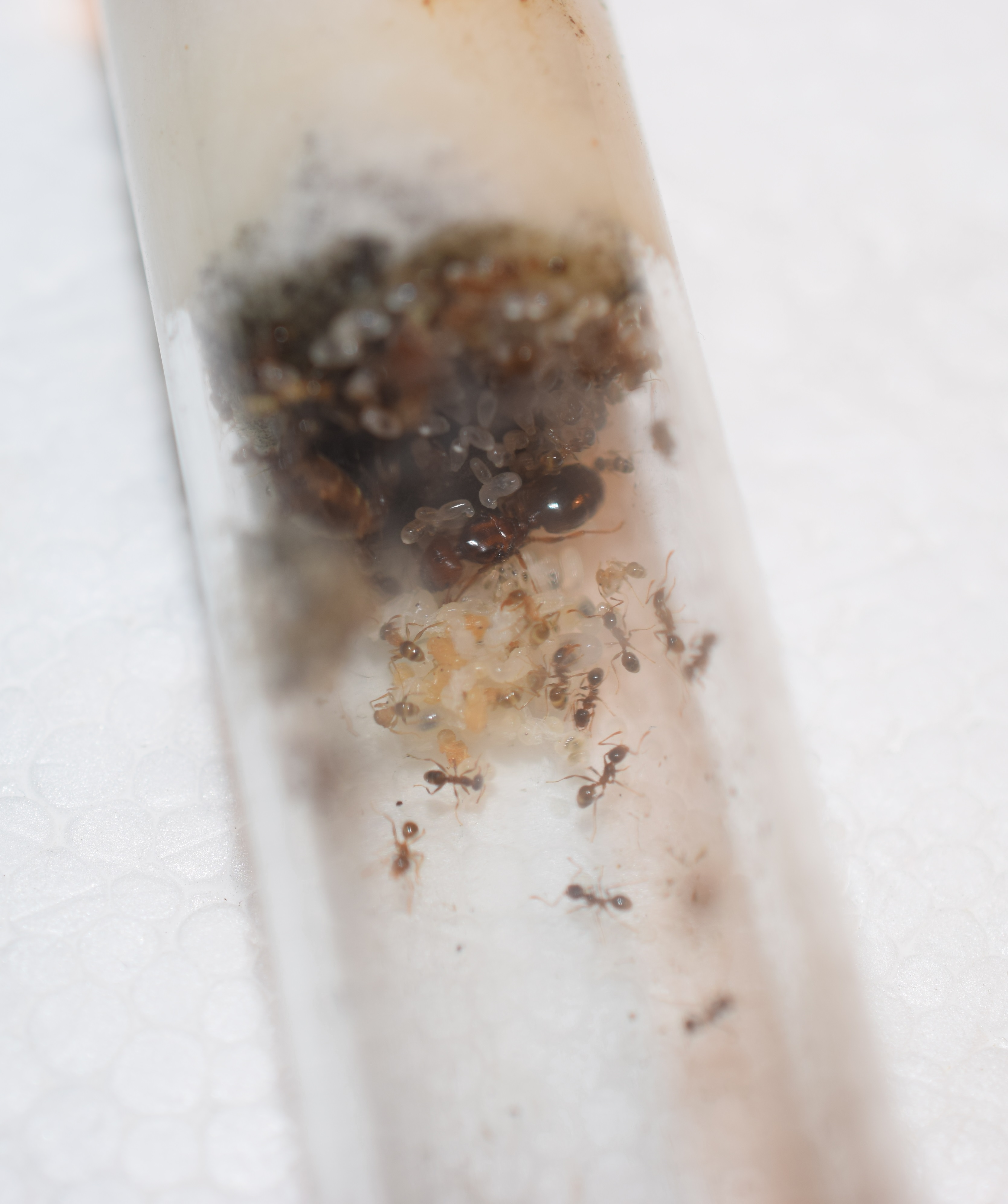 Si cela reste une Pheidole pallidula banale d'élevage, il est intéressant d'illustrer la variation de coloris que l'on peut retrouver au sein de cette espèce en fonction des écophénotypes. Bien entendu, si quelqu'un d'autre possède des informations pour étayer cette variation, elles sont la bienvenue.