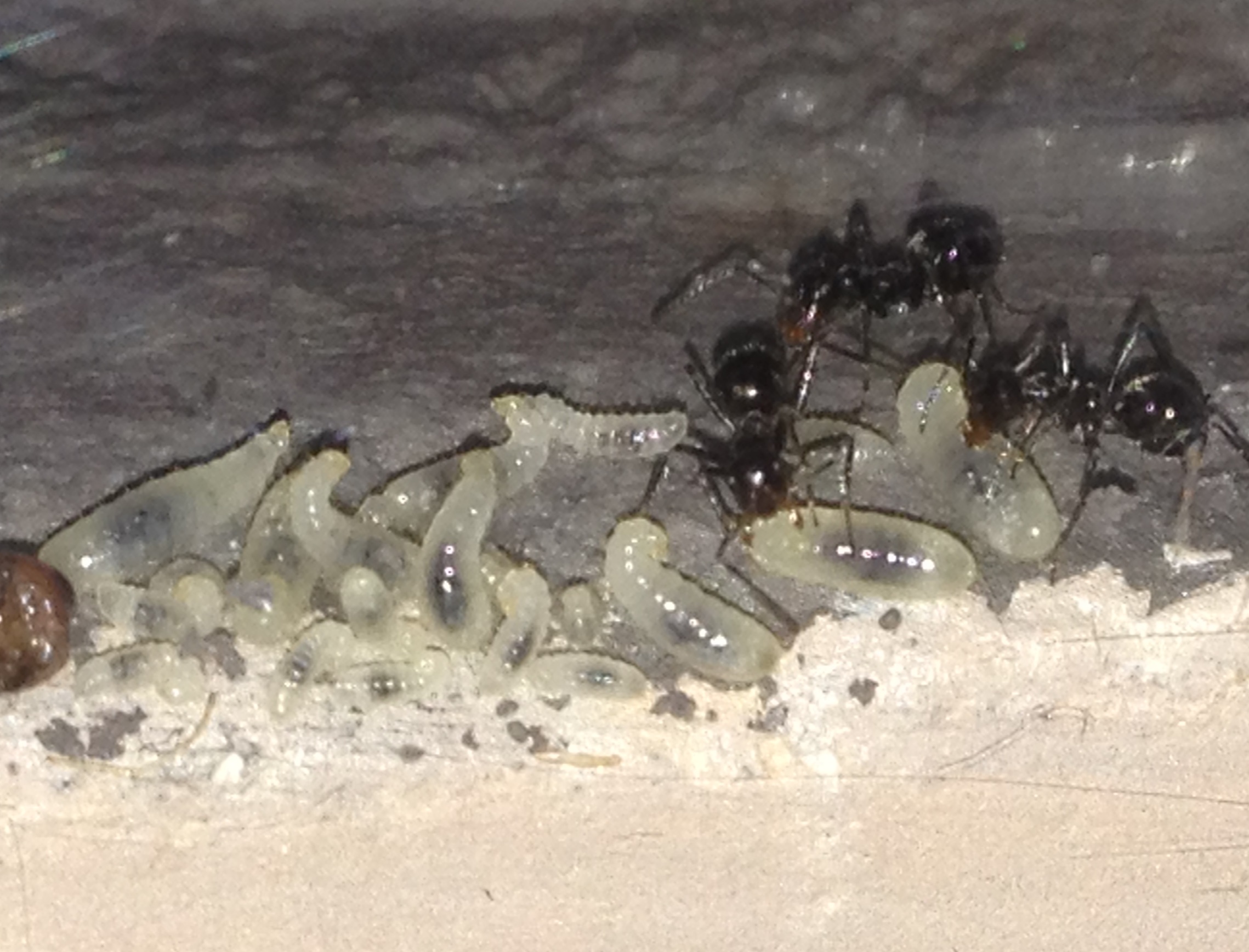 Au jour d'aujourd'hui, 2 larves semblent avoir entrepris une nymphose nue (sans cocon), elles sont toujours là et ne semblent pas servir de nourriture à la colonie.