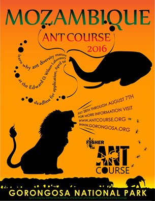 L'édition 2016 pris part au laboratoire Edward O Wilson (http://eowilsonfoundation.org/e-o-wilso ... gorongosa/), au sein du parc national du Gorongosa, Mozambique. Ce lieu ne fut pas sélectionné au hasard : entre les escapades du père de la sociobiologie (ayant de fait donné son nom au laboratoire inauguré pour l'occasion) et l'écrasante biodiversité locale, peu de lieu seraient plus adaptés à la découverte du monde myrmycéen. De plus, ce parc national en pleine renaissance après une guerre civile l'ayant laissé exsangue se veut être un modèle de développement durable et de support scientifique pour le sud de l'Afrique. Alors, quand une cinquantaine d'allumés les ont contacté pour demander un visa exploratoire des bestioles locales, ils s'en sont frottés les mains.