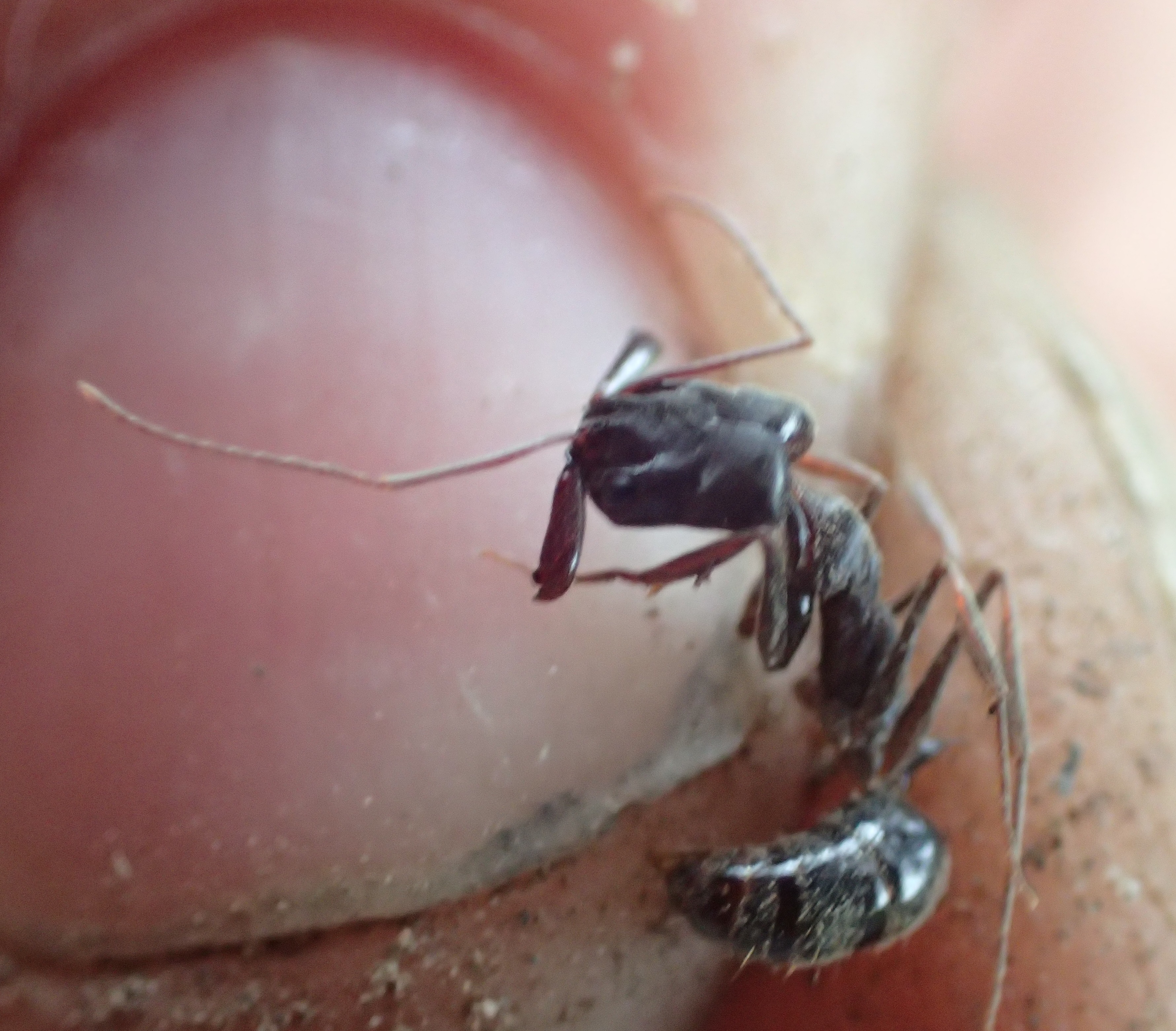 Nylandera, Technomyrmex, Plagiolepis, Pheidole, Strumigenys, Monomorium : toutes s'y retrouvent, et toutes sont bien trop petites pour être photographiées correctement. Oecophylla longinoda occupe la canopée, Odontomachus troglodytes grouille sur la litière du sol, et de magnifiques Tetraponera, comme cette reine de T. schulthessi que j'ai eu la chance de recueillir, occupent l'entre deux.