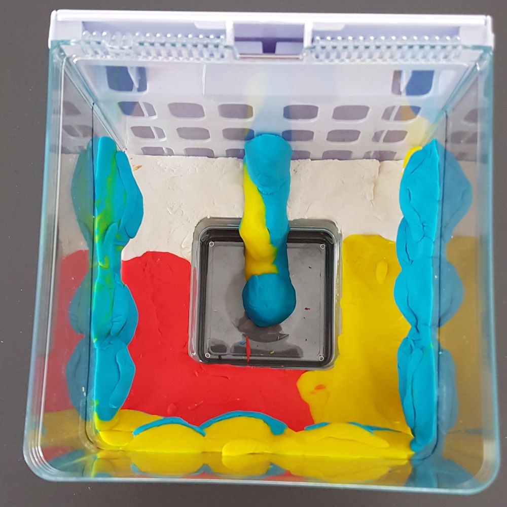 Je souhaite laisser la fourmilière la plus zen possible et donc naturellement blanche. Les galeries (colorées par la pâte à modeler malgré un brossage intensif) vont être blanchies à la Dremel.