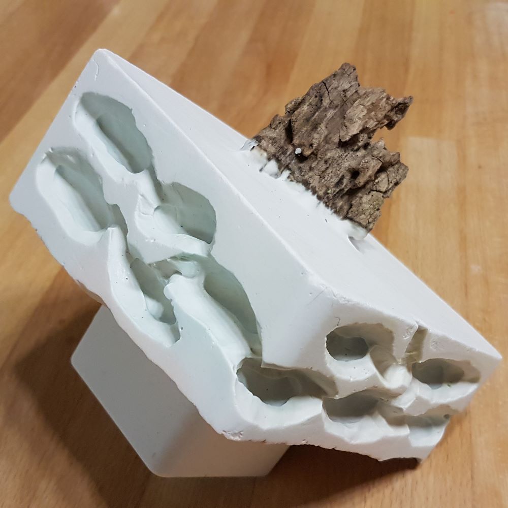 Difficile de visualiser une fourmilière en négatif lorsque l'on a pas trop l'habitude. Je veux éviter des galeries trop grosses et des « chambres » trop petites. Il faut que cela ait l'air un minimum « naturel ».