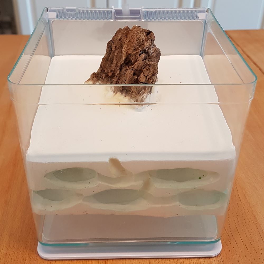 J'avais depuis longtemps pensé à utiliser ce petit cube aquarium que j'ai également vu en vente chez un fournisseur de matériel pour fourmis.
