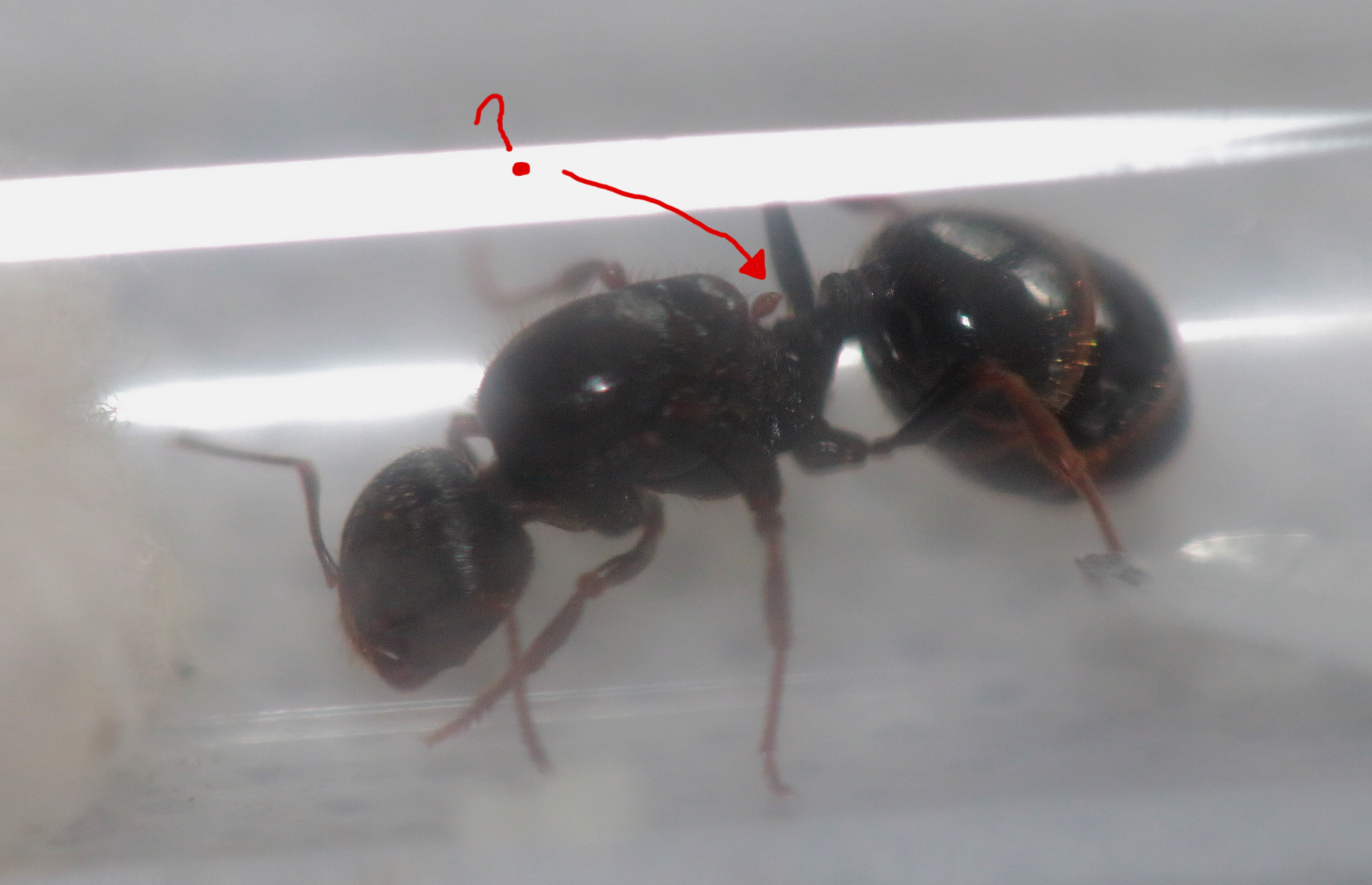 Voici une gyne de couleur noire brunne avec des contrastes rougeâtres entre les tergites ou sur les articulations des pattes.