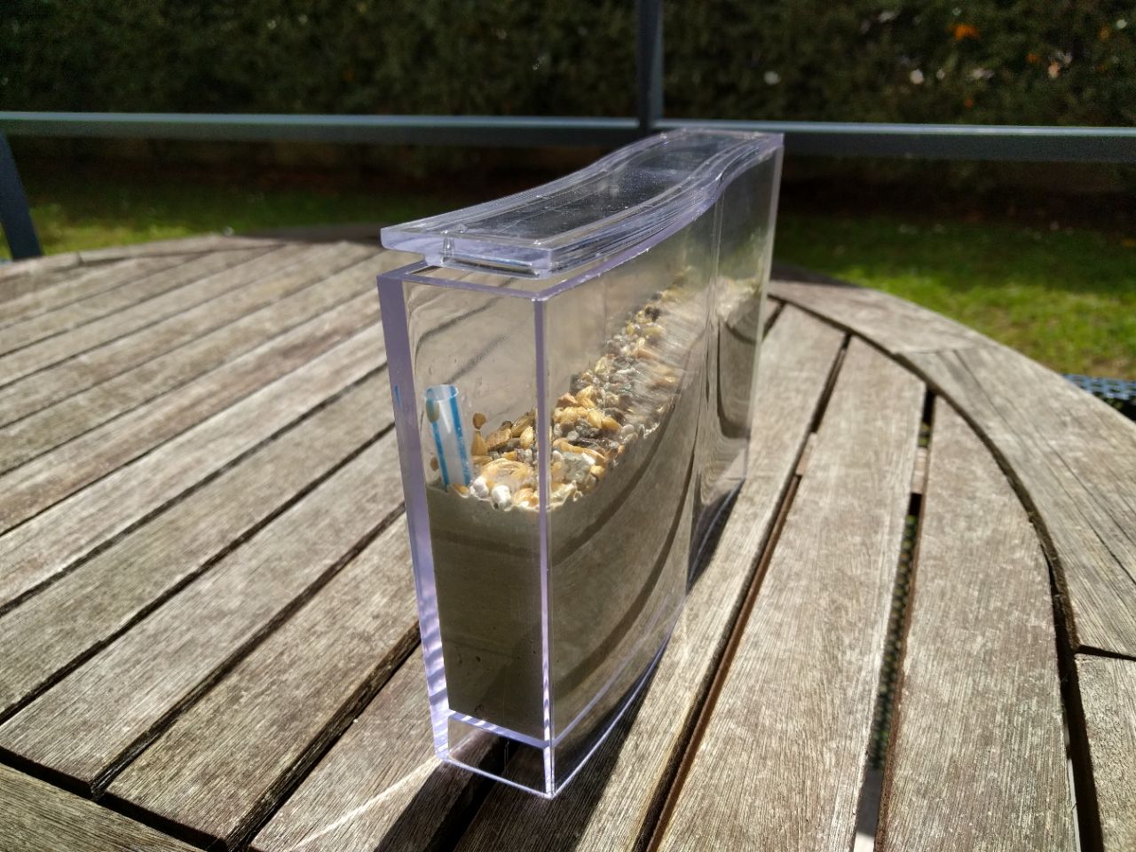 Le couvercle du nid ne sera pas mis, j'ai un aquarium en plastique rectangulaire plus grand qui me permet d'inclure l'ADF et j'ai recouvert les bords de PTFE.