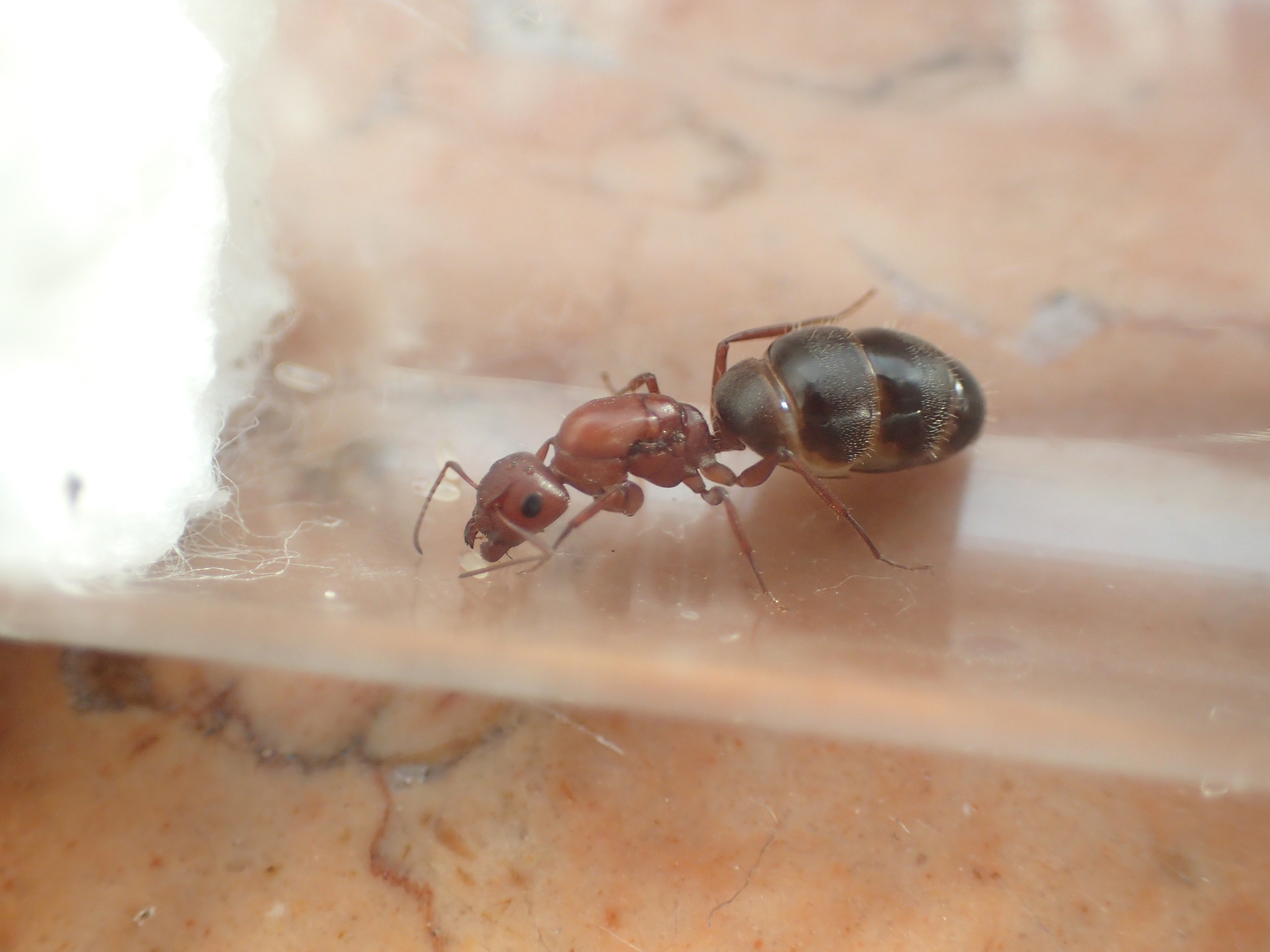 Bref, cette reine une fois mise en tube s'est rapidement mise à pondre. Et un bon mois plus tard, une première ouvrière chétive au pronotum rouge élargi a vu le jour. L’élevage ne semble pas bien compliqué. Et les couleurs de l'espèce sont ma foi, assez attrayantes.