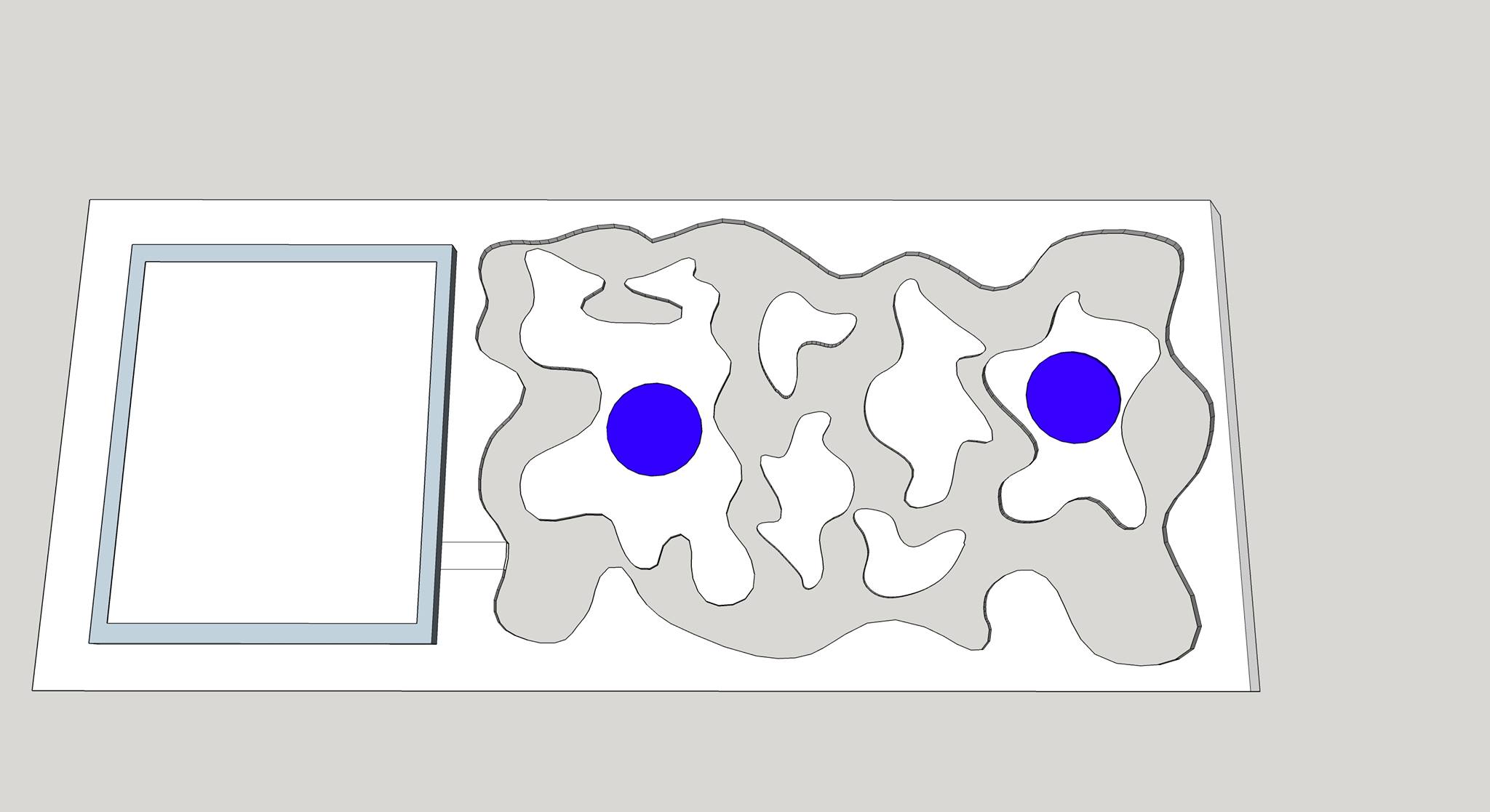 Avec un peu d'aide et beaucoup de patience sur Sketchup je commence à voir le bout de la conception du nid avec aire de chasse intégrée.