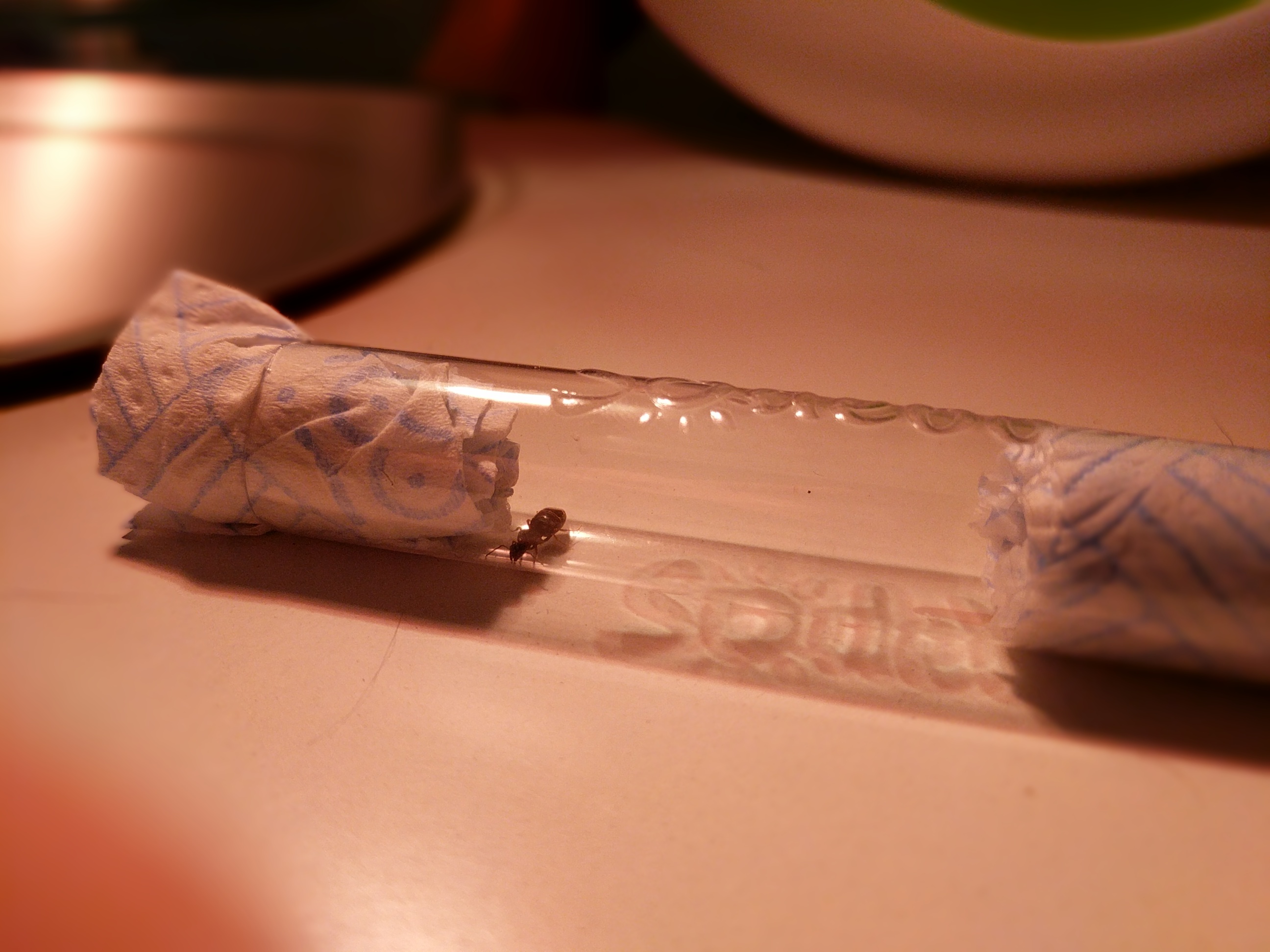 Avec les conseils du forum, je changeai rapidement la méthode du papier essuie-tout dans tube en plastique, par un plus classique tube à essai avec du coton !