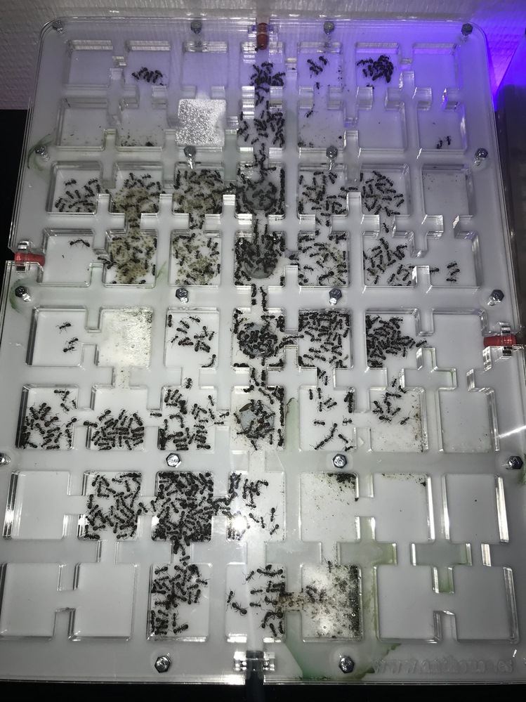 Ainsi que la photo de octobre 2018 du nid, un peu dégueulasse mais je ne peux malheureusement rien faire pour le moment, dans quelques mois je vais acheter le même nid que pour mes Messor, au moins elles auront de la place pour se développer comme bon leur semble.