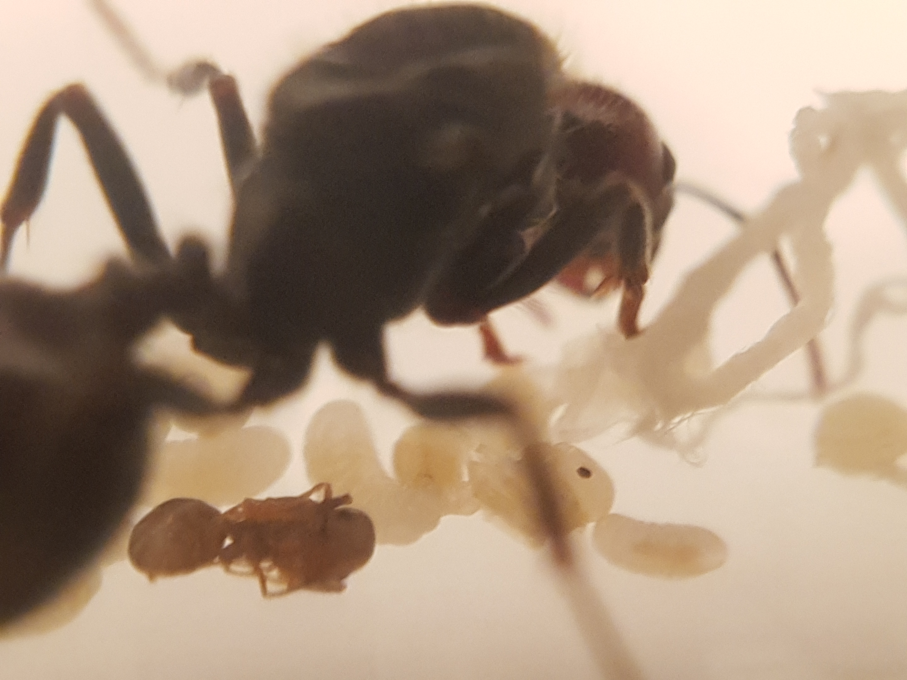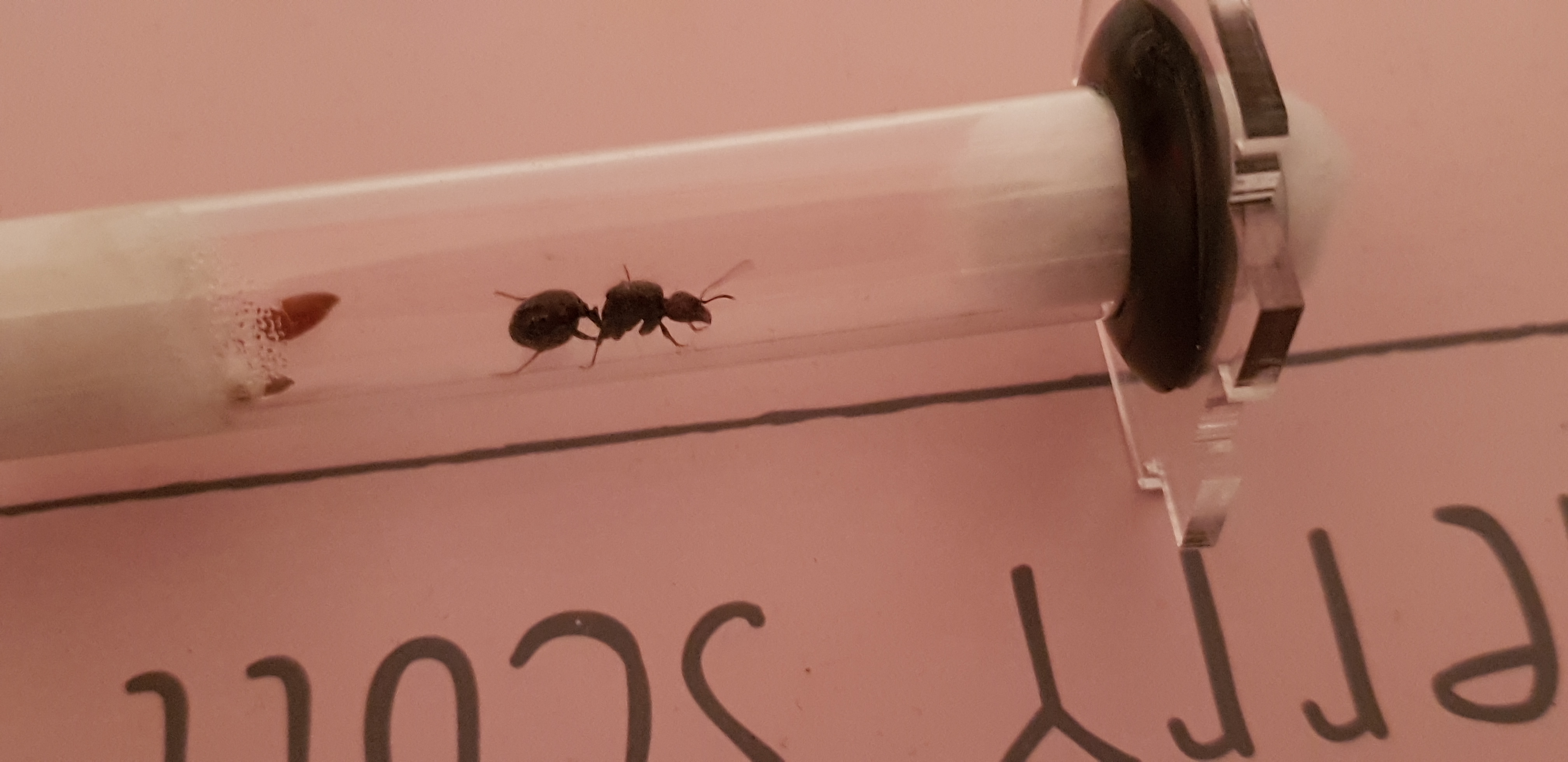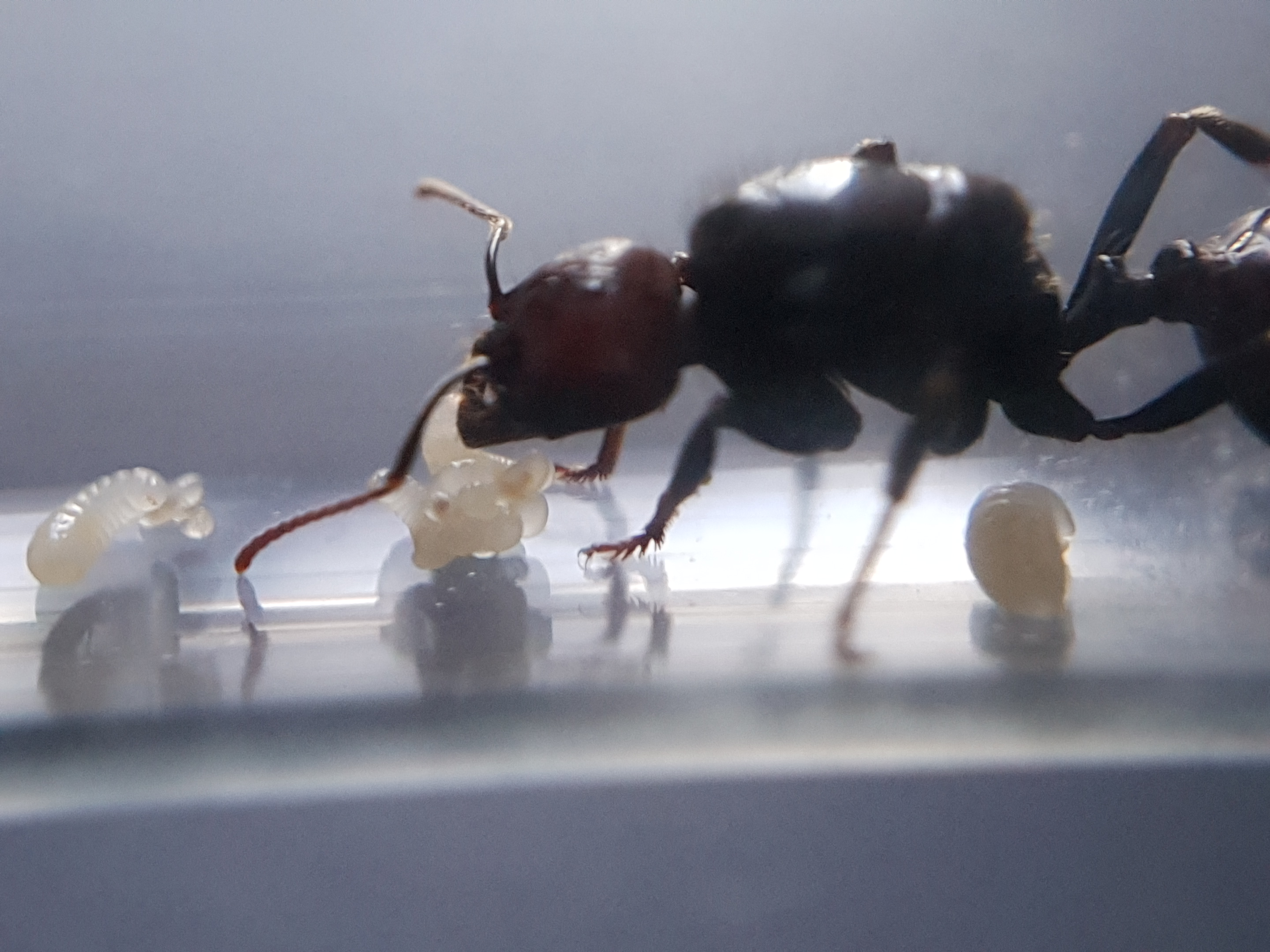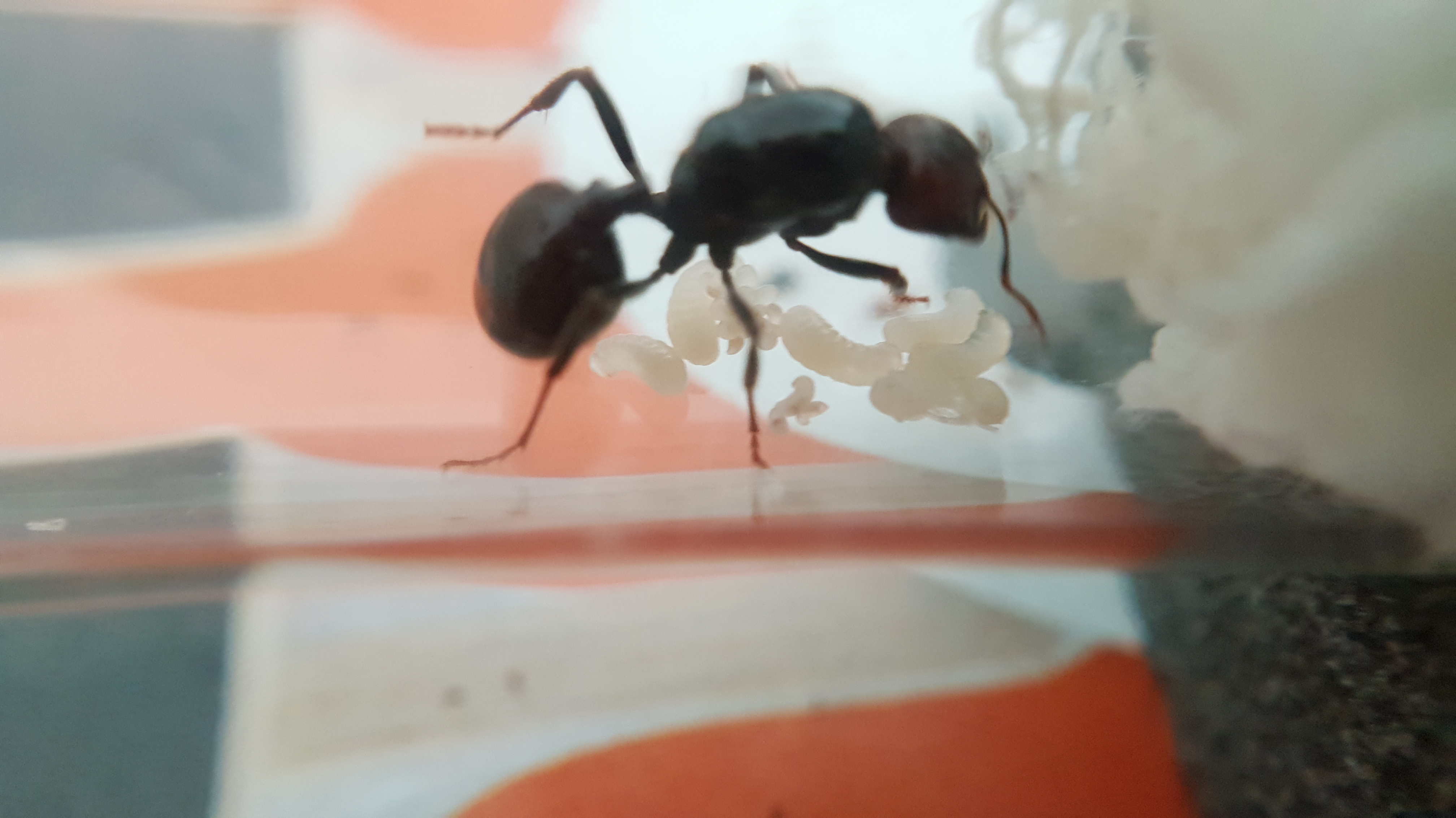 J'ai reçu ma première gyne (une Messor barbarus) le 31/10/2018 pour Halloween, elle se porte bien. Je l'ai reçue dans un tube en plastique (non transparent), je l'ai transférée dans un tube en verre. Ensuite, je l'ai placée dans un tube d'isolant thermique sur un tapis chauffant à 25°C avec quelques graines.