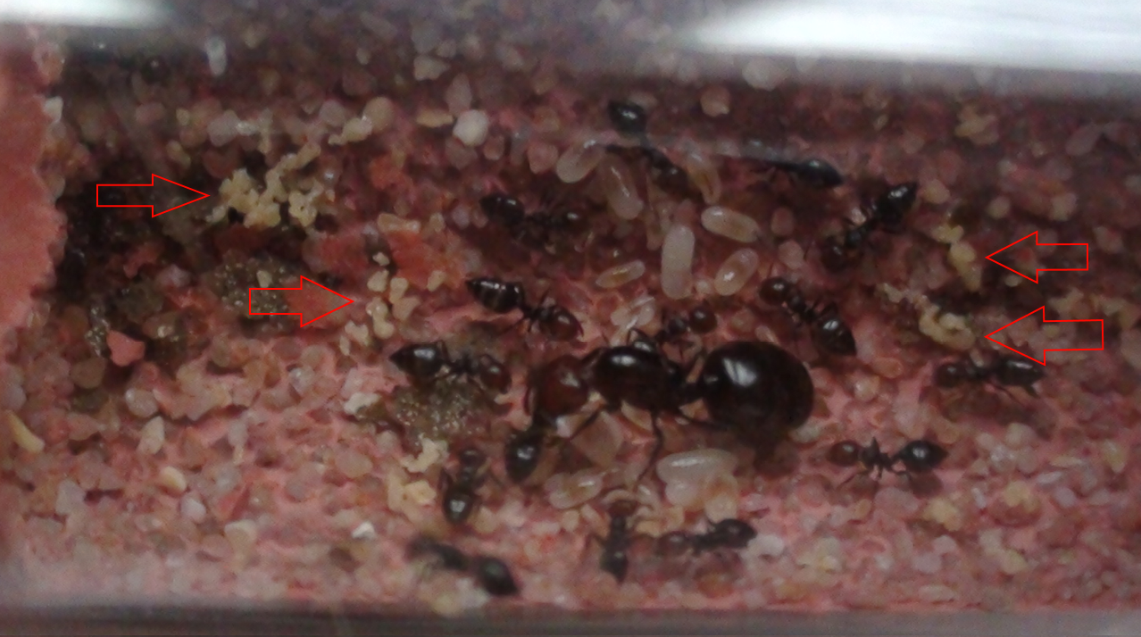 J'ai un petit problème avec ma jeune fondation de Crematogaster scutellaris qui est composée d'une trentaine d'ouvrières et qui sont actuellement maintenues à 20/21°C, diapause à température ambiante. Le nid n'est pas humidifié mais il y a un abreuvoir en permanence dans l'aire de chasse. L'aire de chasse reste ouverte sans toit périphérique mais j'y mets 3 centimètres d'huile de paraffine tout en vérifiant régulièrement qu'elles ne passent pas.