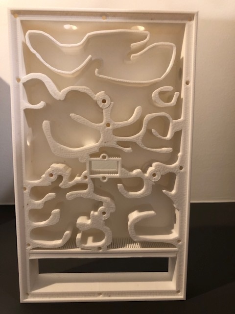 Oui et non... En fait, je dessine les reliefs à la main sur Sketchup. Je les fais assez épais soit pour positionner une vis soit pour optimiser l'étanchéité entre la vitre en plexi et les galeries. Pour le haut, je n'ai pas prévu de vis (à tort peut-être) et j'ai utilisé la fonction de dédoublement avec une épaisseur homogène de 2 mm (par facilité plutôt qu'autre chose). Cela optimise l'espace mais c'est un peu moche comme rendu...