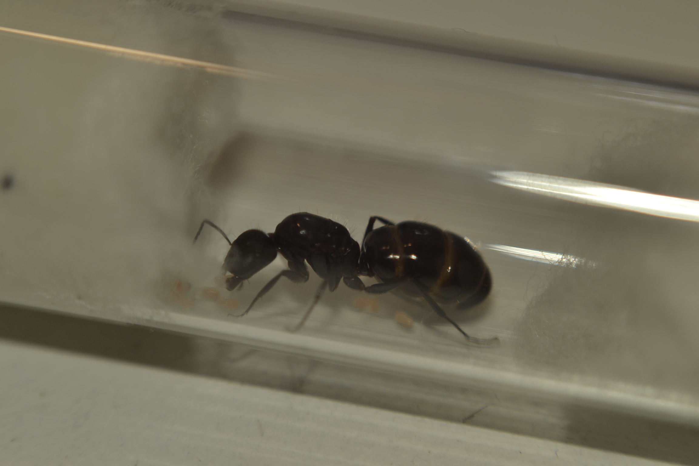 Je vois une Camponotus vagus, luisante noire, pilosité importante, taille un peu juste (hors physogastrie) mais pas incohérente, date d'essaimage cohérente.
