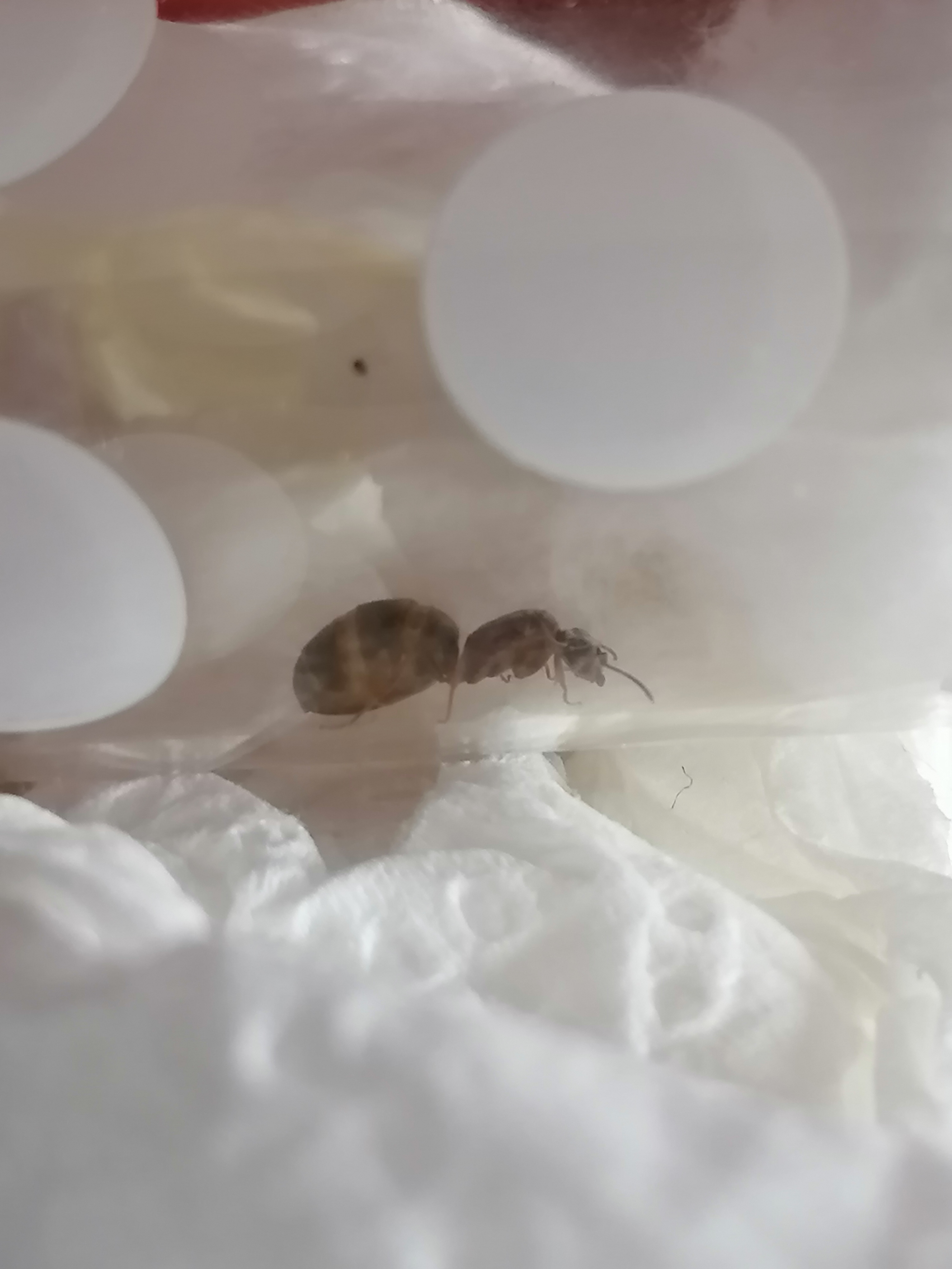 Fort de ma trouvaille, en rentrant du travail, je déménage la petite dans un "tube à essai" (il y avait des dragées dedans avant) avec une réserve d'eau et tout le tralala, je prends quelques photos et je la laisse tranquille, au noir, espérant qu'elle se plaise et qu'elle veuille bien pondre.