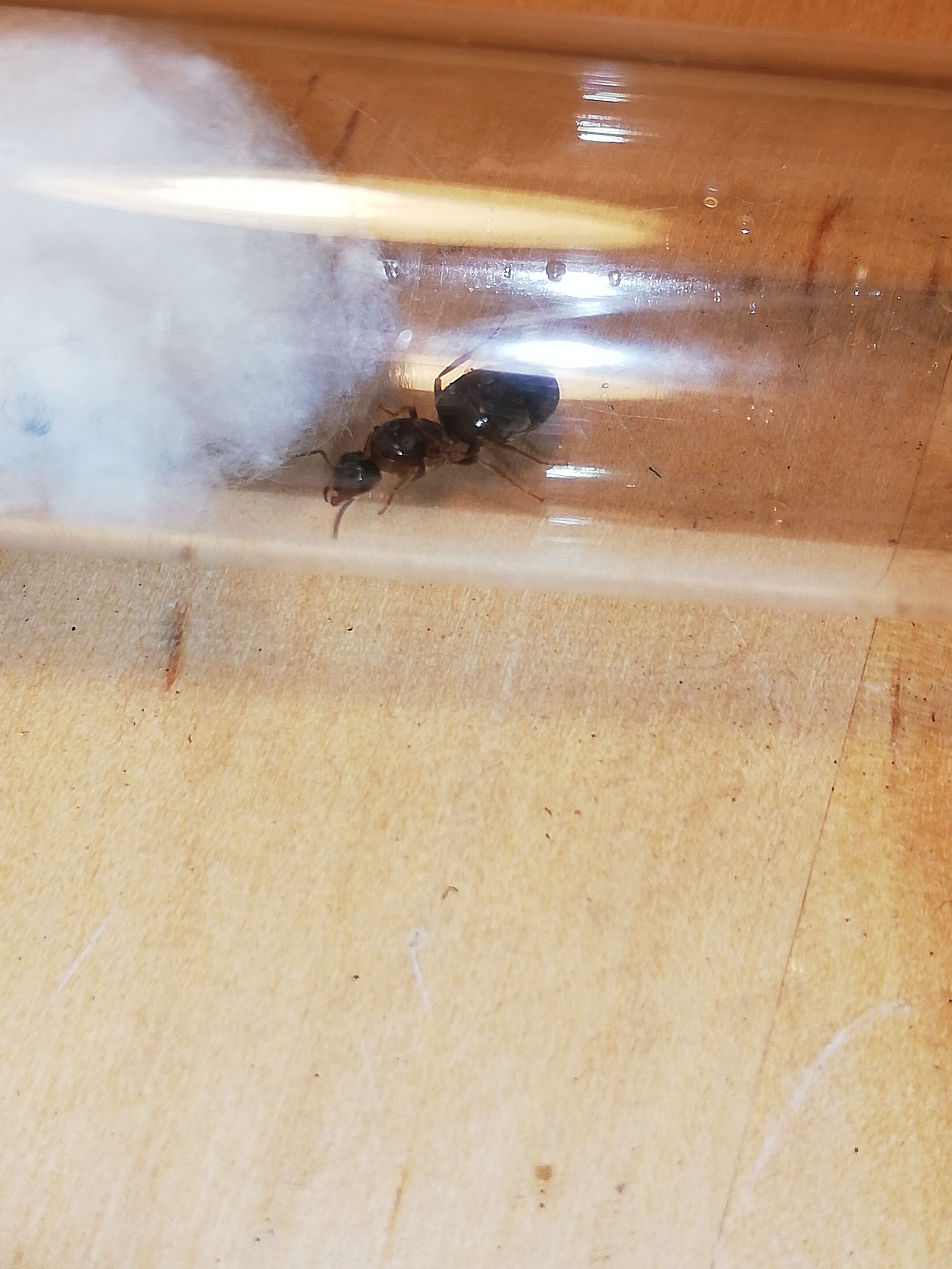 Bonjour, en cette soirée j'ai trouvé une gyne ailée se baladant sur ma terrasse. Après l'avoir mise en tube, elle a retiré ses ailes. Elle ressemble à une Lasius mais en plus petit, plus clair et avec le thorax brun.