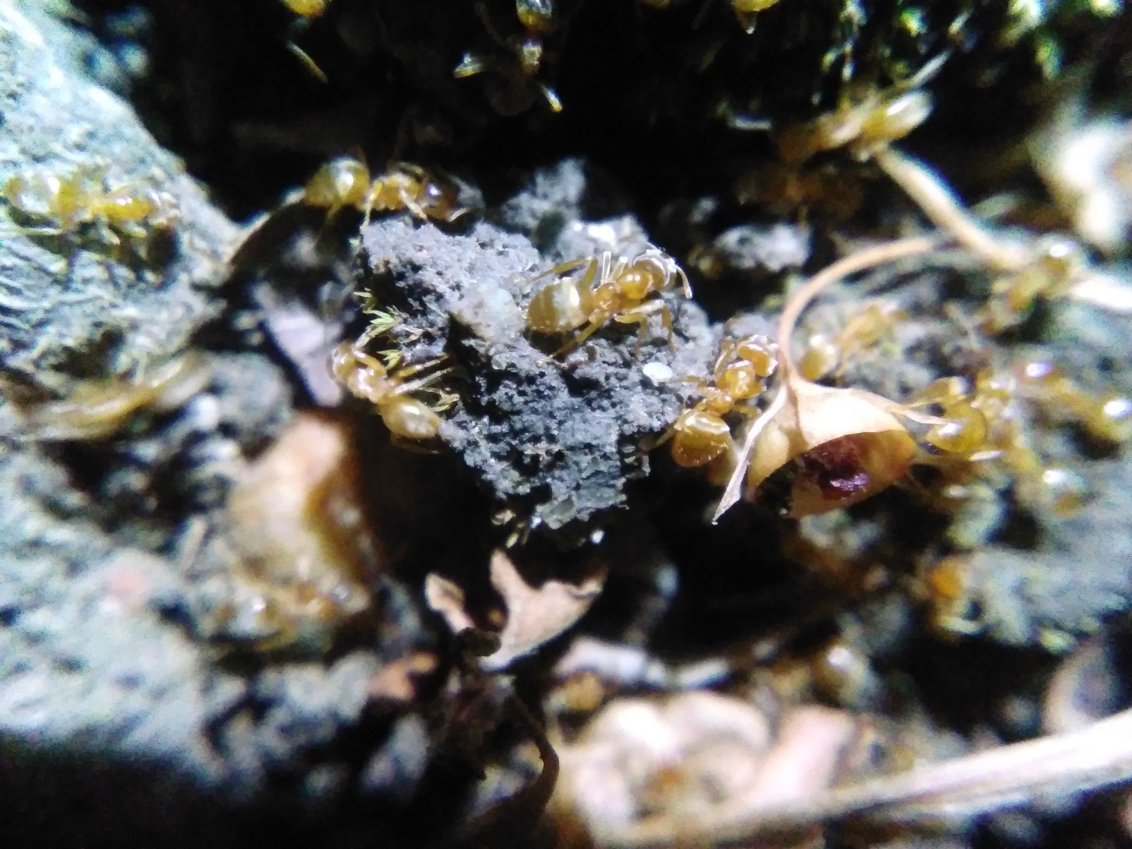 Cet épisode marque malheureusement la fin de mon suivi de cette colonie, étant donné qu'avec la pluie les fourmis ont retrouvé la capacité à boucher les trous qu'il y avait dans les galeries de leur demeure. Le trou qui figure sur la toute première photo par exemple s'est vu ajouter un toit, au point que je suis presque incapable de dire maintenant où il se situait.