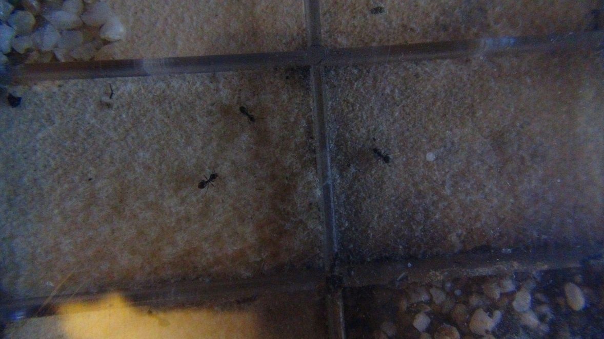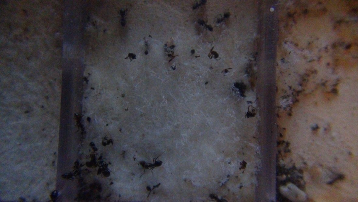 Pareil, je ne m’inquiéterai pas, j'ai eu ce problème avec une aire de chasse végétalisée en BC avec des Lasius, aucun changement de comportement de leur part.