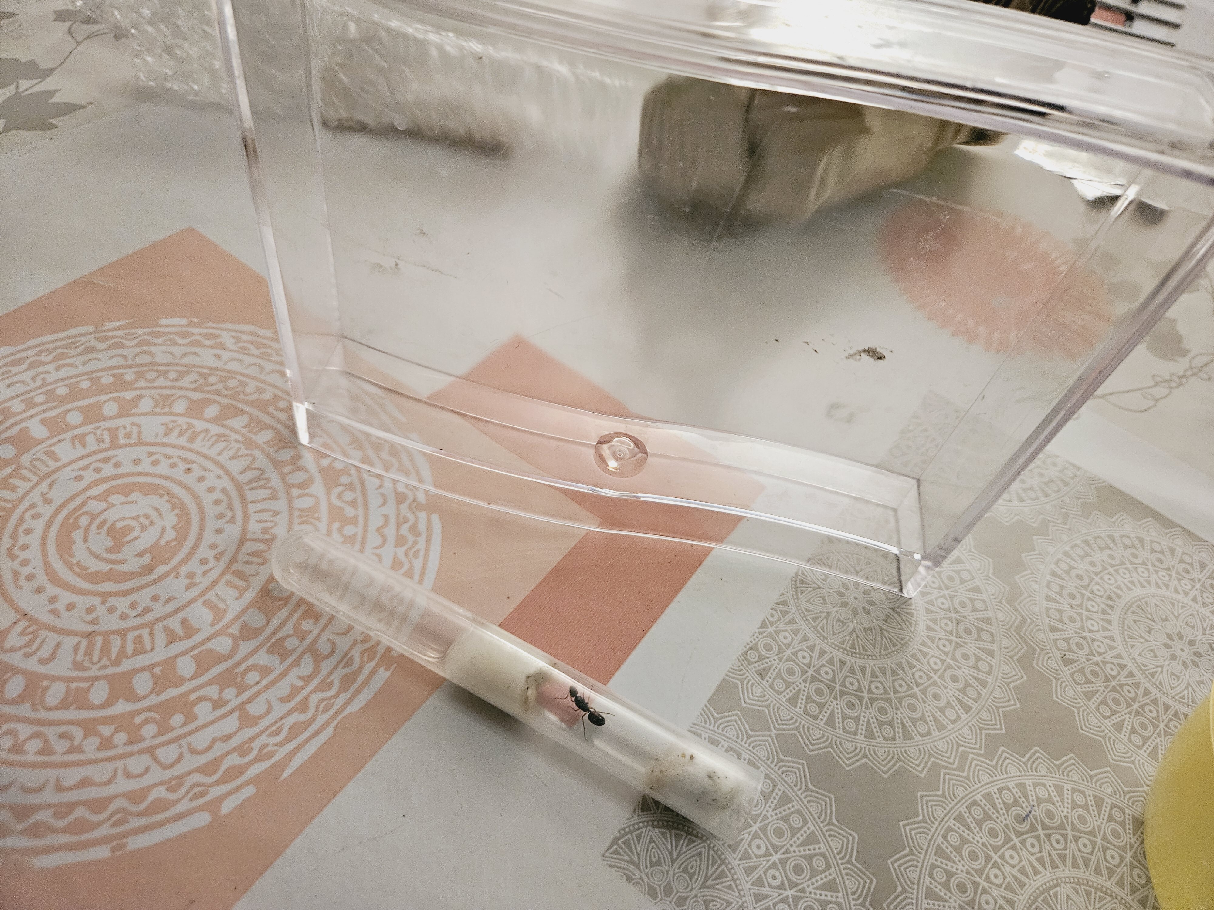 Contrairement à ce qui est écrit dans la notice, je pense qu'il vaut mieux la laisser dans le tube pendant un certain temps plutôt que de la mettre immédiatement dans la fourmilière, qui est assez grande. Cependant, je n'en sais pas beaucoup plus.