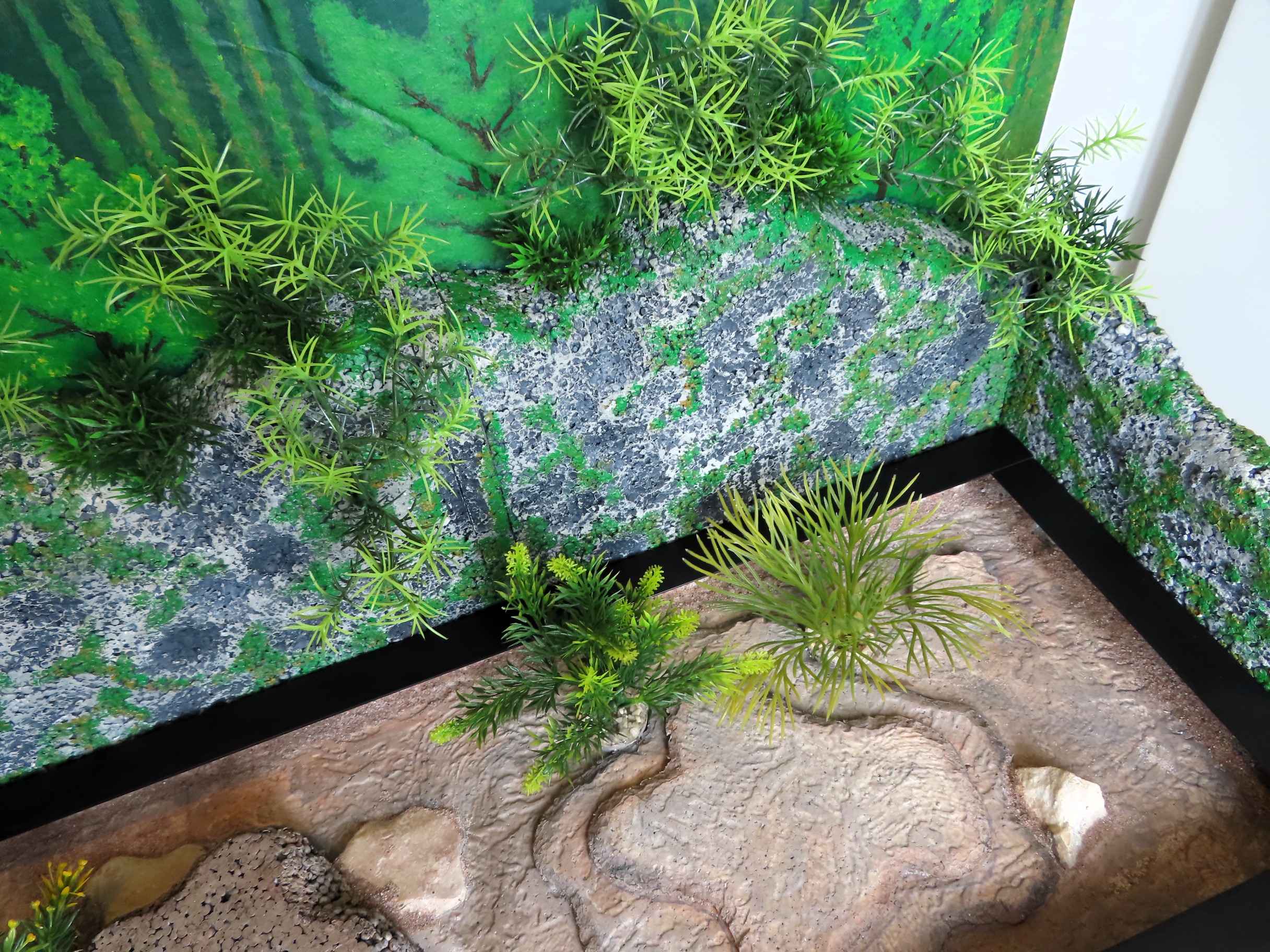 Le décor d'arrière plan se glisse entre le mur et l'ADC, tout comme ses côtés, à droite et à gauche, contre les parois de la niche qui accueille cette dernière réalisation. Toutes les plantes sont bien entendu artificielles.