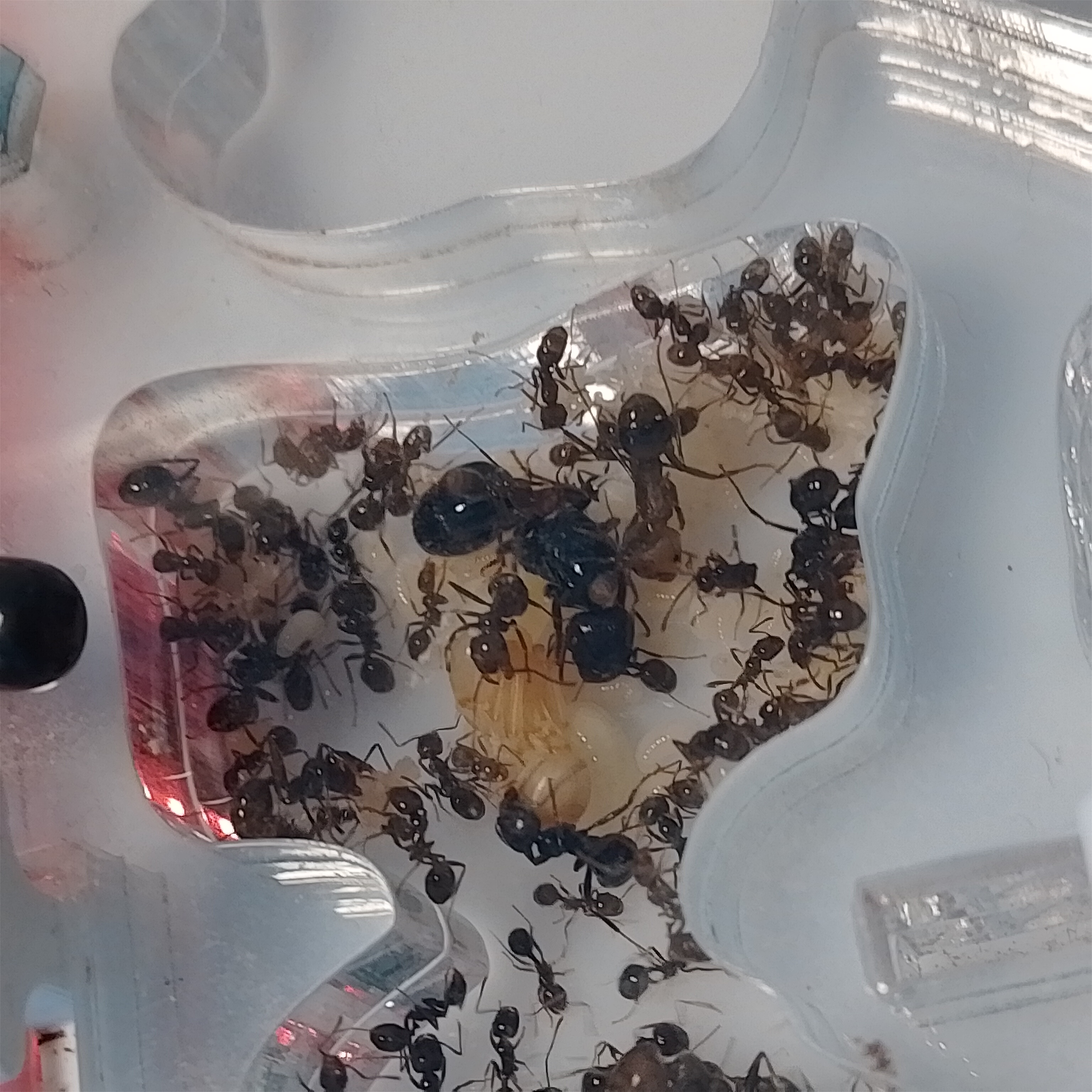 La colonie pète la forme, le couvain est énorme ! Il y a aussi des nymphes de major et une énorme larves qui va donner un énorme major !
