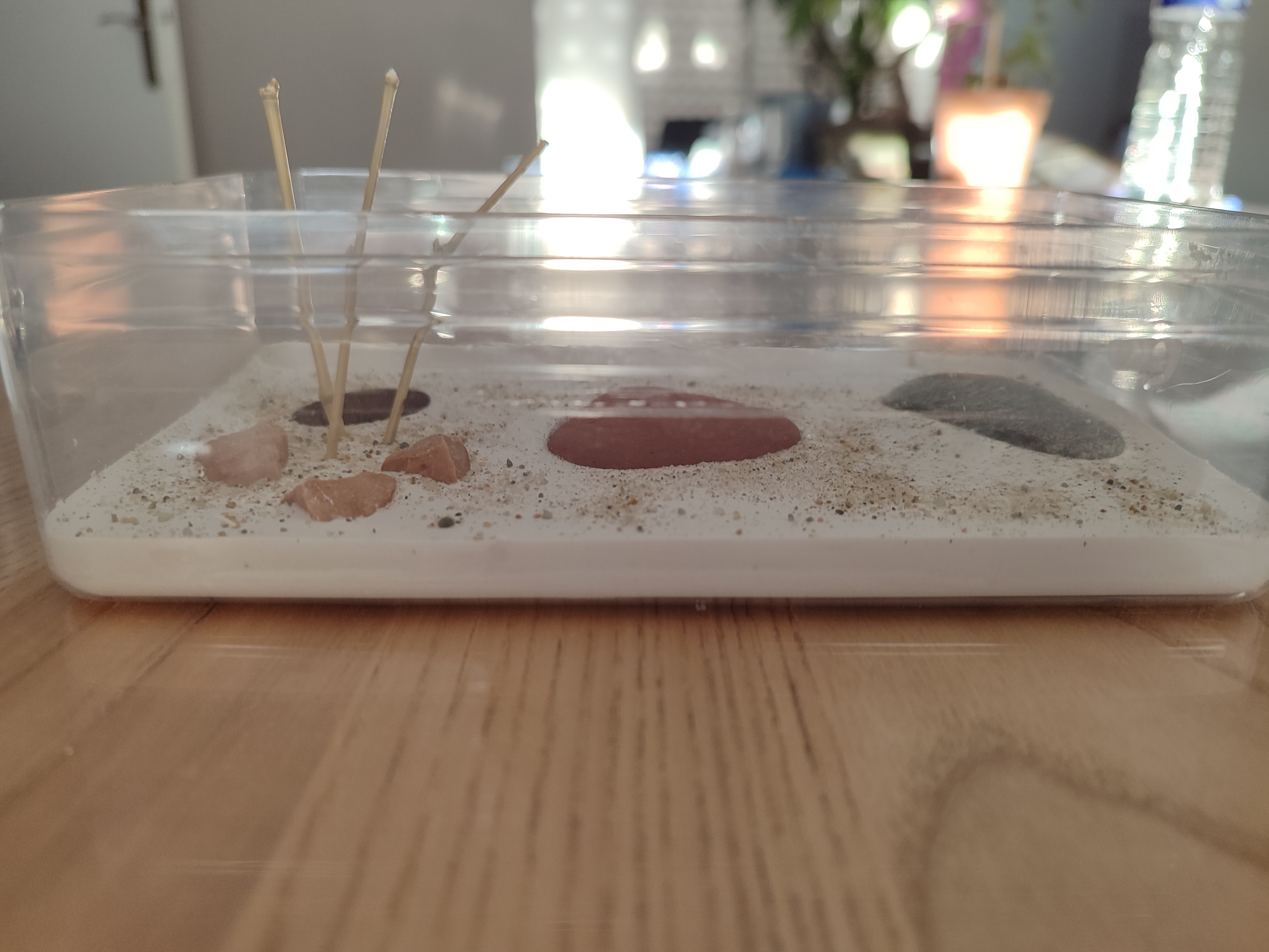 Ensuite il ne reste plus qu'à disperser des petits bouchons nourrisseurs tout autour du tube, lesquels ne prendront guère plus de place dans cette boîte.