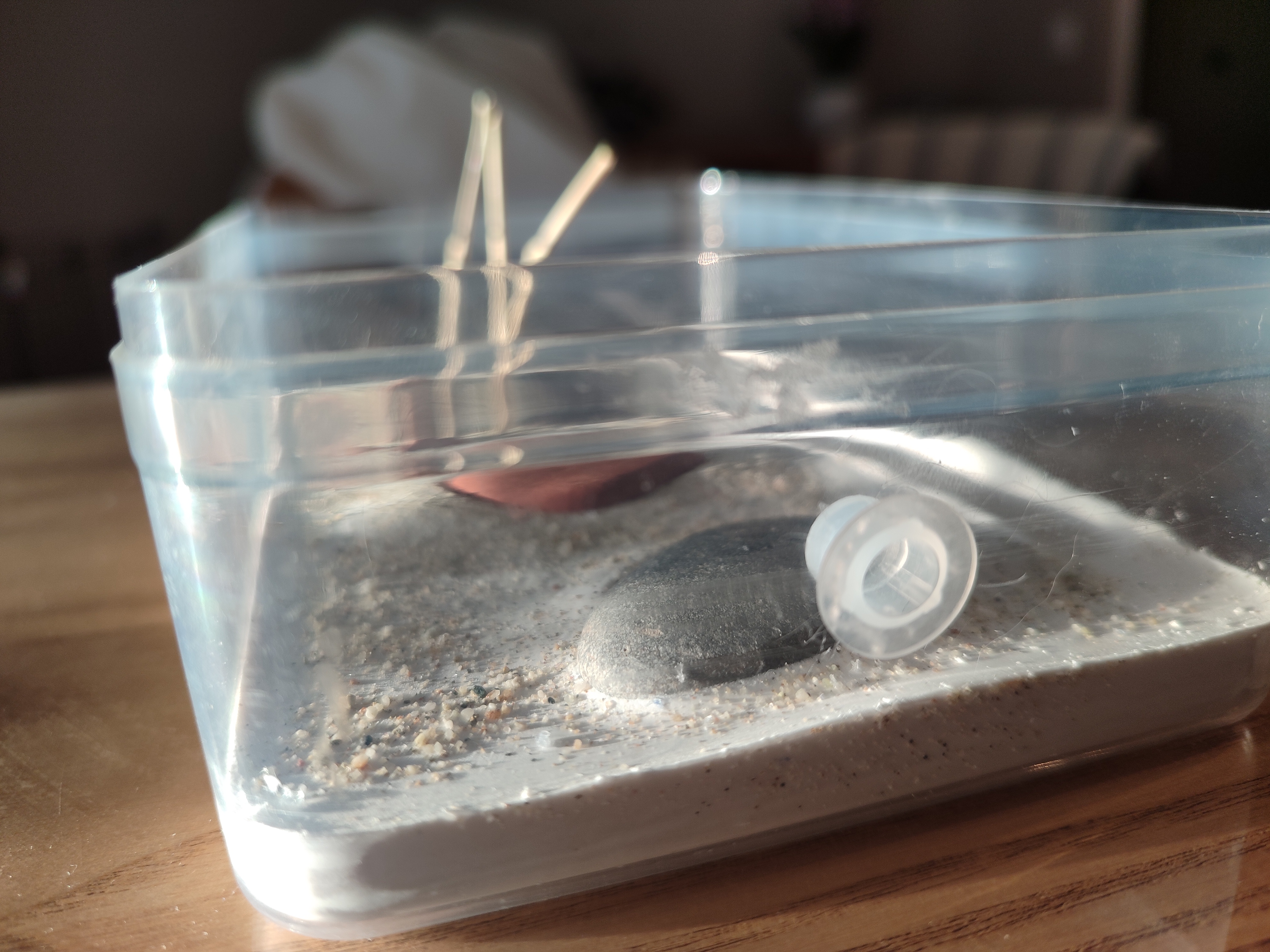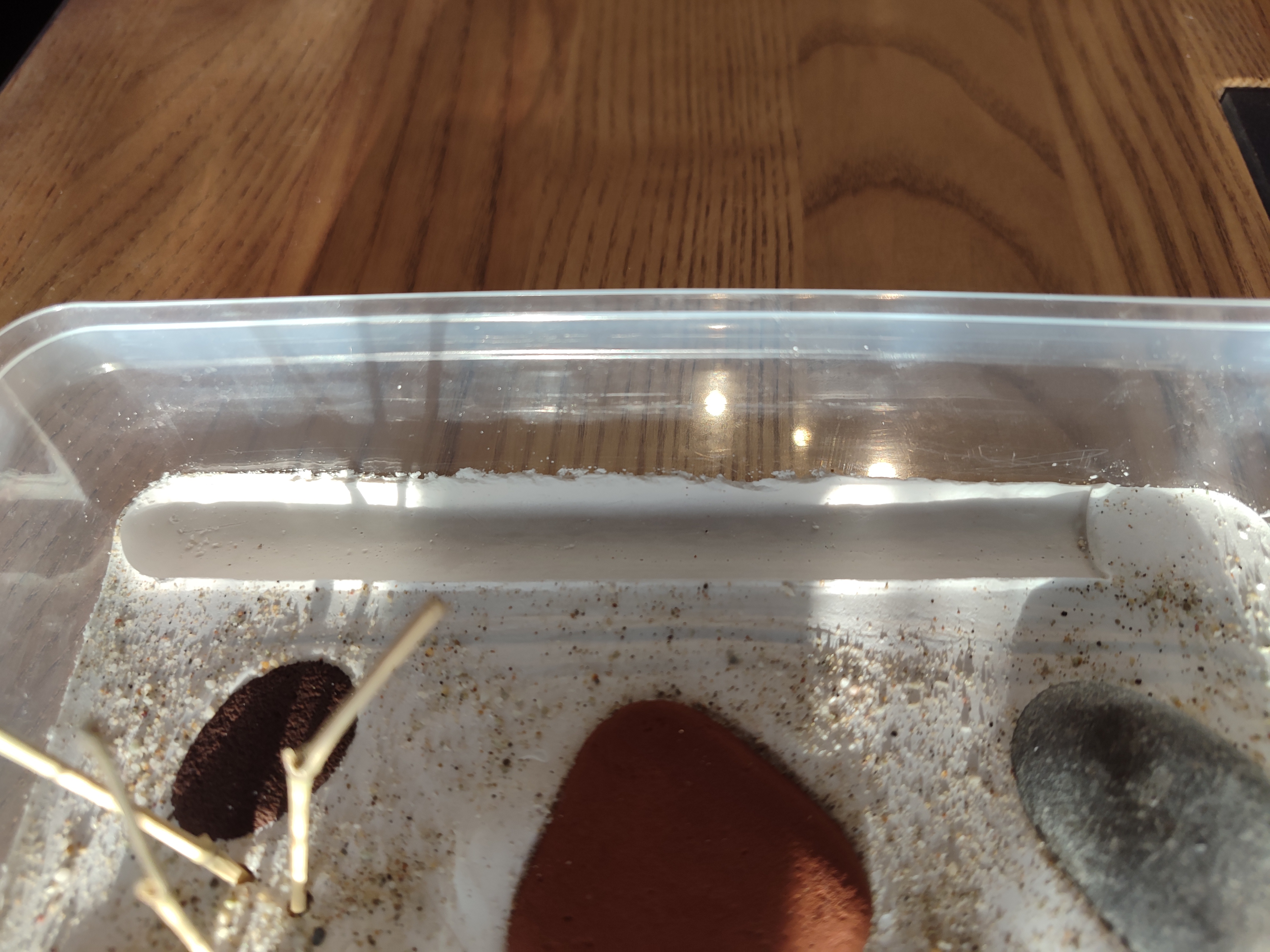 Je suis tout à fait d'accord avec Mic qui préconise de créer une ouverture dans son couvercle, ce qui permet les manipulations intérieures sans risque de voir les fourmis se sauver puisque ses bords sauvegardés ont été enduits d'