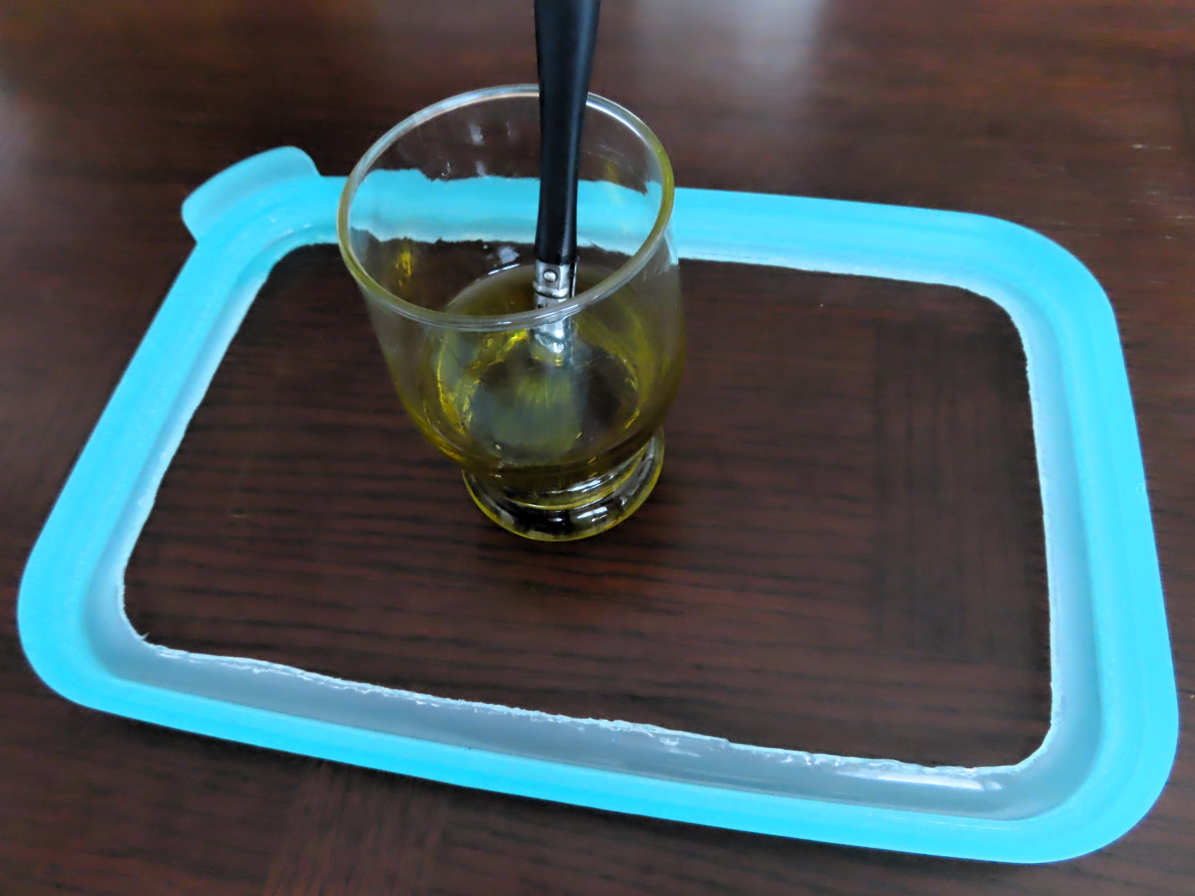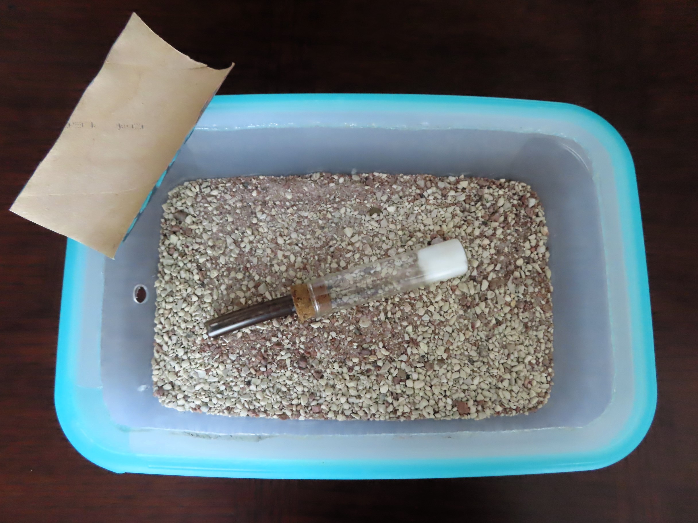 L'anti évasion que j'utilise est de l'huile d'olive aromatisée au basilic appliqué au pinceau par dessous. Ce qu'il y a de pratique avec ce type de couvercle c'est qu'il s'enclipse et ne risque pas de bouger ensuite. Je n'oublie surtout pas de fermer le trou latéral par un bout de carton scotché par dessus à l'extérieur.