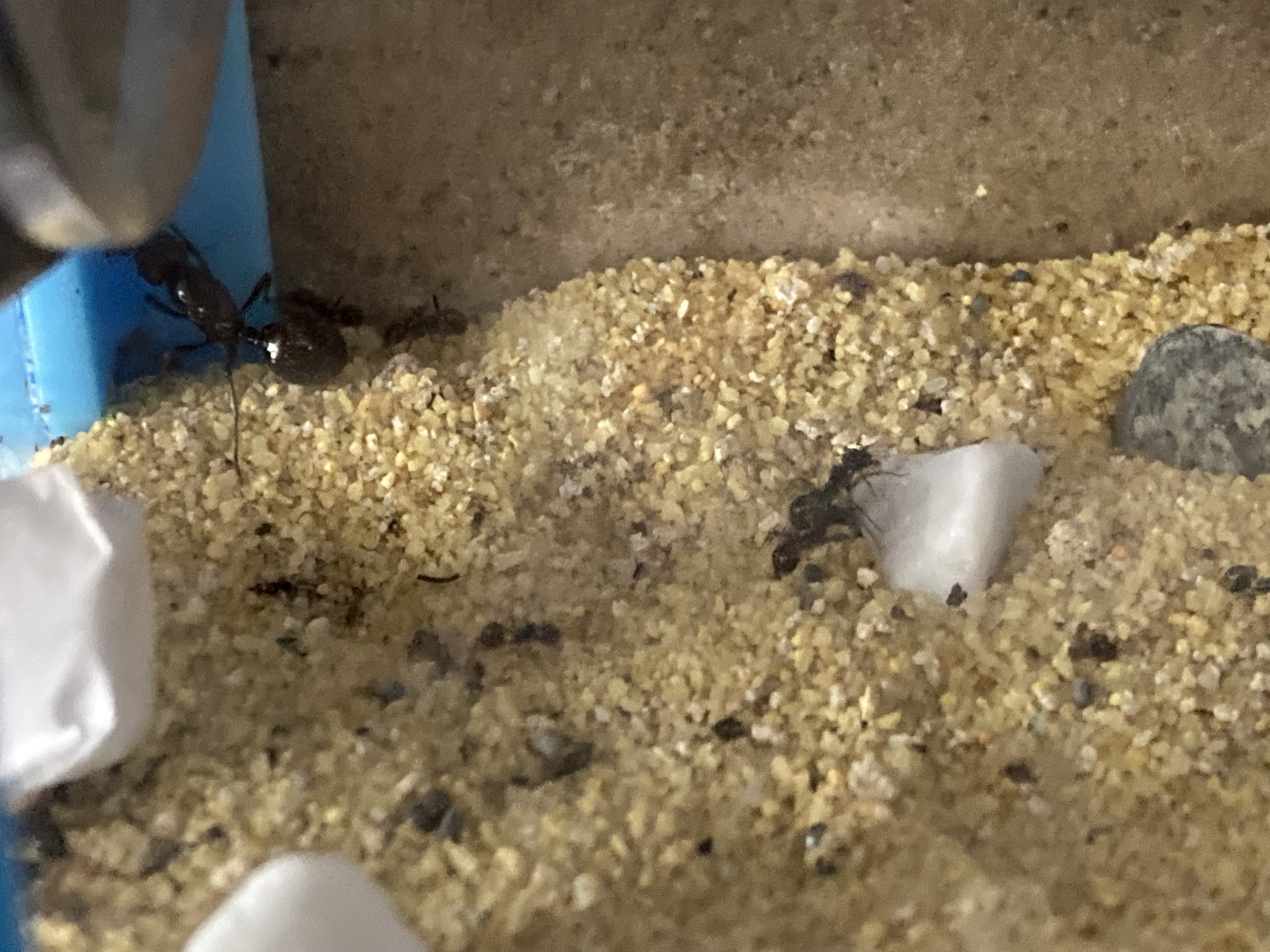 J’ai reçu la fondation samedi, plutôt grosse, et avec plus de graines, comme l’avait promis le vendeur pour pardonner le retard causé de l’un des problèmes ( le bug d’e*ay). J’ai reçu un tube tout de même beaucoup plus grand que ce que je pensais, 25 cm, impossible de trouver une boîte ( pour l’ADC) pouvant l’accueillir facilement nid de tuyau de la bonne taille l’entrée étant super petite. Je l’ai posé en diagonale (légère ) dans le nid pour qu’il puisse rentrer. Les fourmis à cause d’une fuite d’eau occasionné par cette très légère pente, ont fuis le tube se retrouvant dans l’ADC. Finalement, elles ont construit des galeries très grandes en très peu de temps. Par contre, après avoir mis toute la terre dans l’ADC, elles essayent de m’en faire un nid annexe