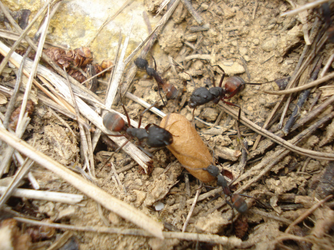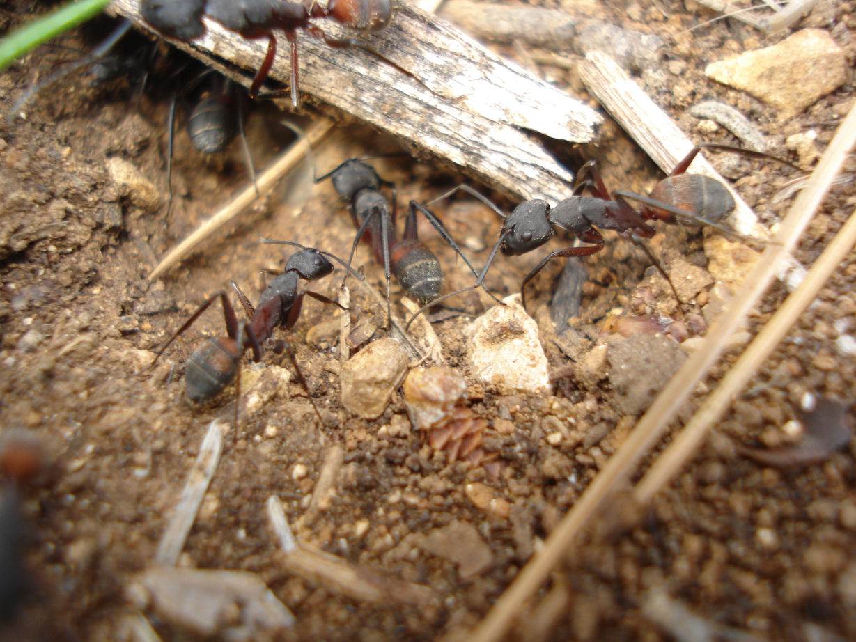 La zone géographique autour de la Sainte-Victoire est le repère d'une de mes fourmis préférée (de chez nous), la Camponotus cruentatus, sans mentir j'ai dû croiser sur les 20 km du parcours au moins une centaine de nids, je sais que je suis proche de Marseille mais c'était impressionnant! Malheureusement, je n'ai pas croisé de gyne mis à part une morte, ce qui me fait penser qu'un essaimage à déjà eu lieu.