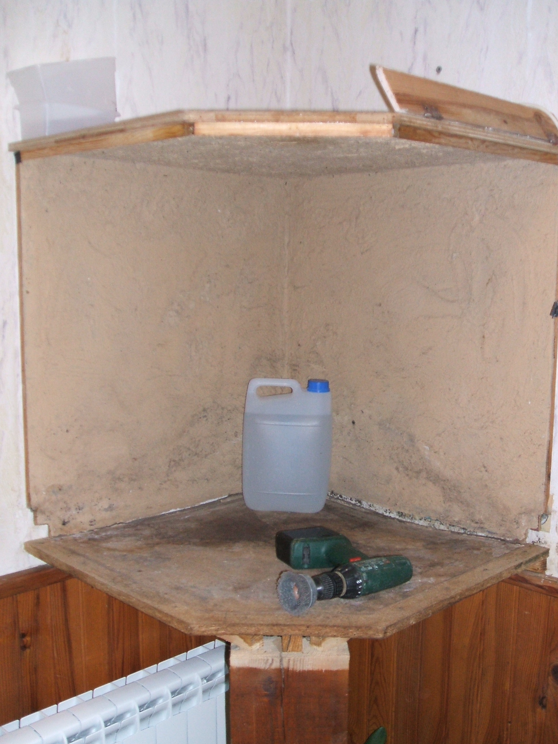 Sur cette photo on voit bien l'assemblage des 3 blocs extérieurs: (notez le tuyau qui apparait dans l'angle, j'y reviendrai plus tard)
