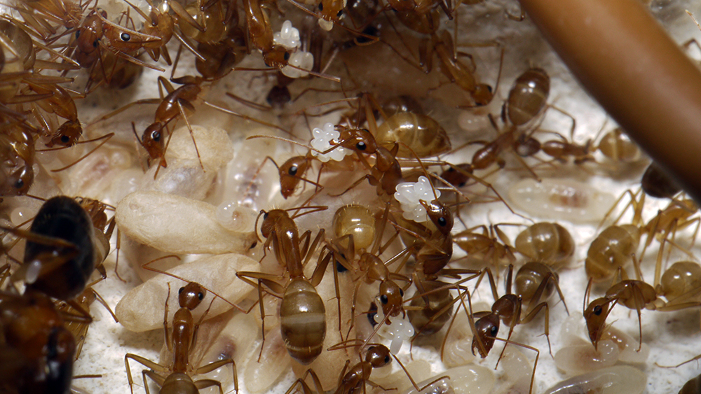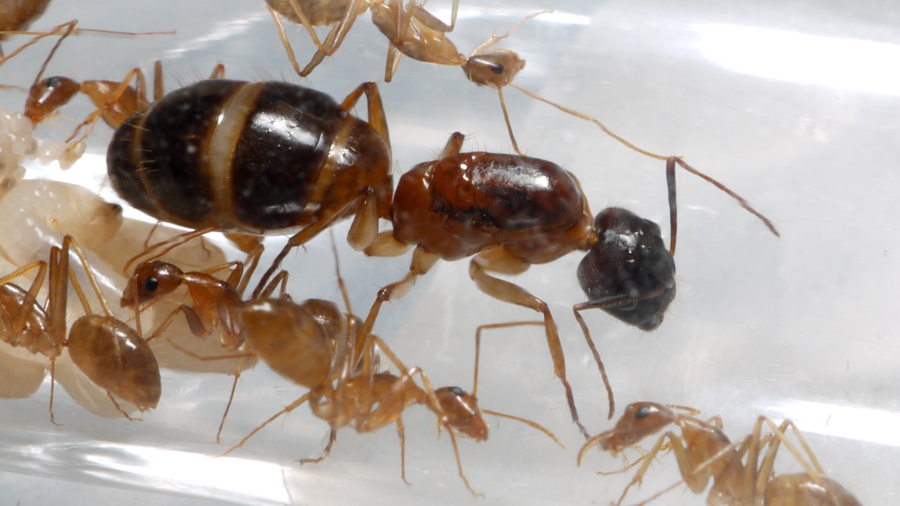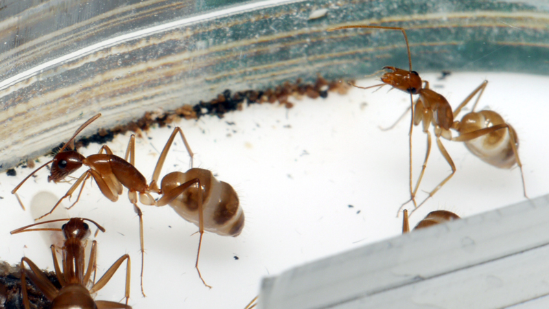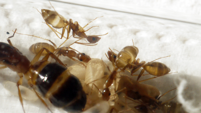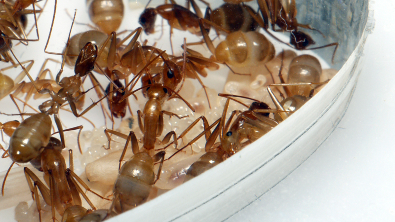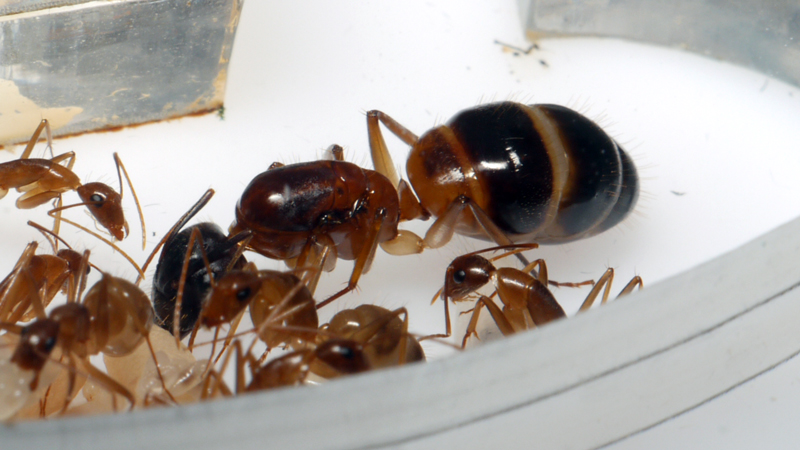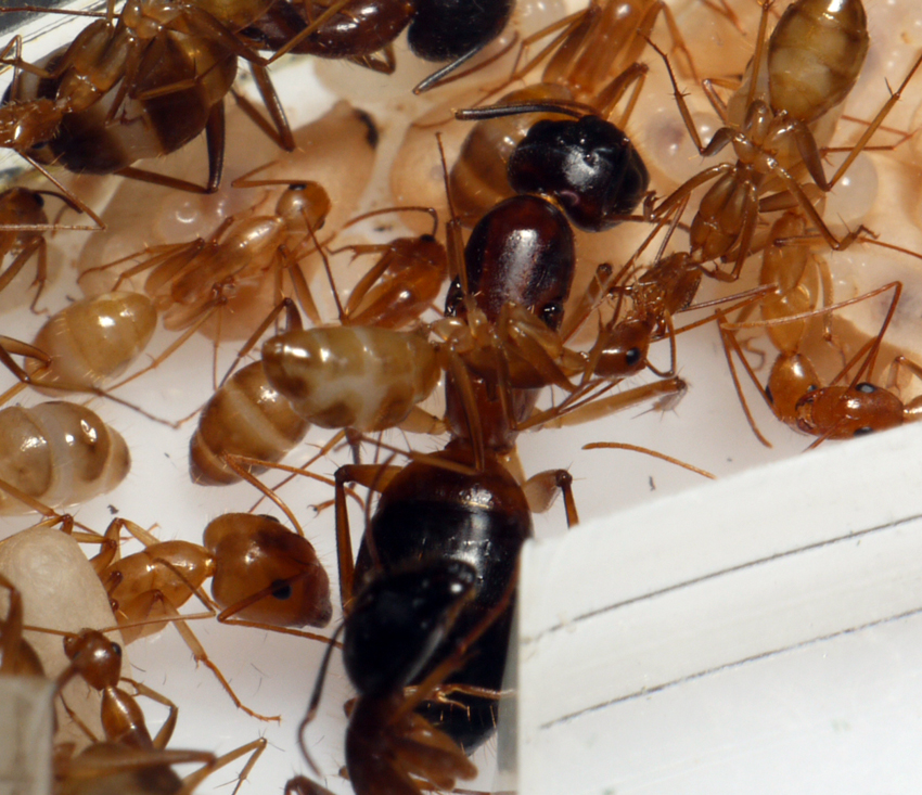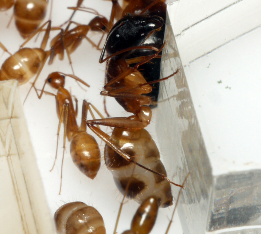 J'ai reçu aujourd'hui les Camponotus cf. pseudoirritans, elles sont 7 ouvrières avec la gyne, leurs couleurs sont superbes et celles de la gyne encore plus ^^.