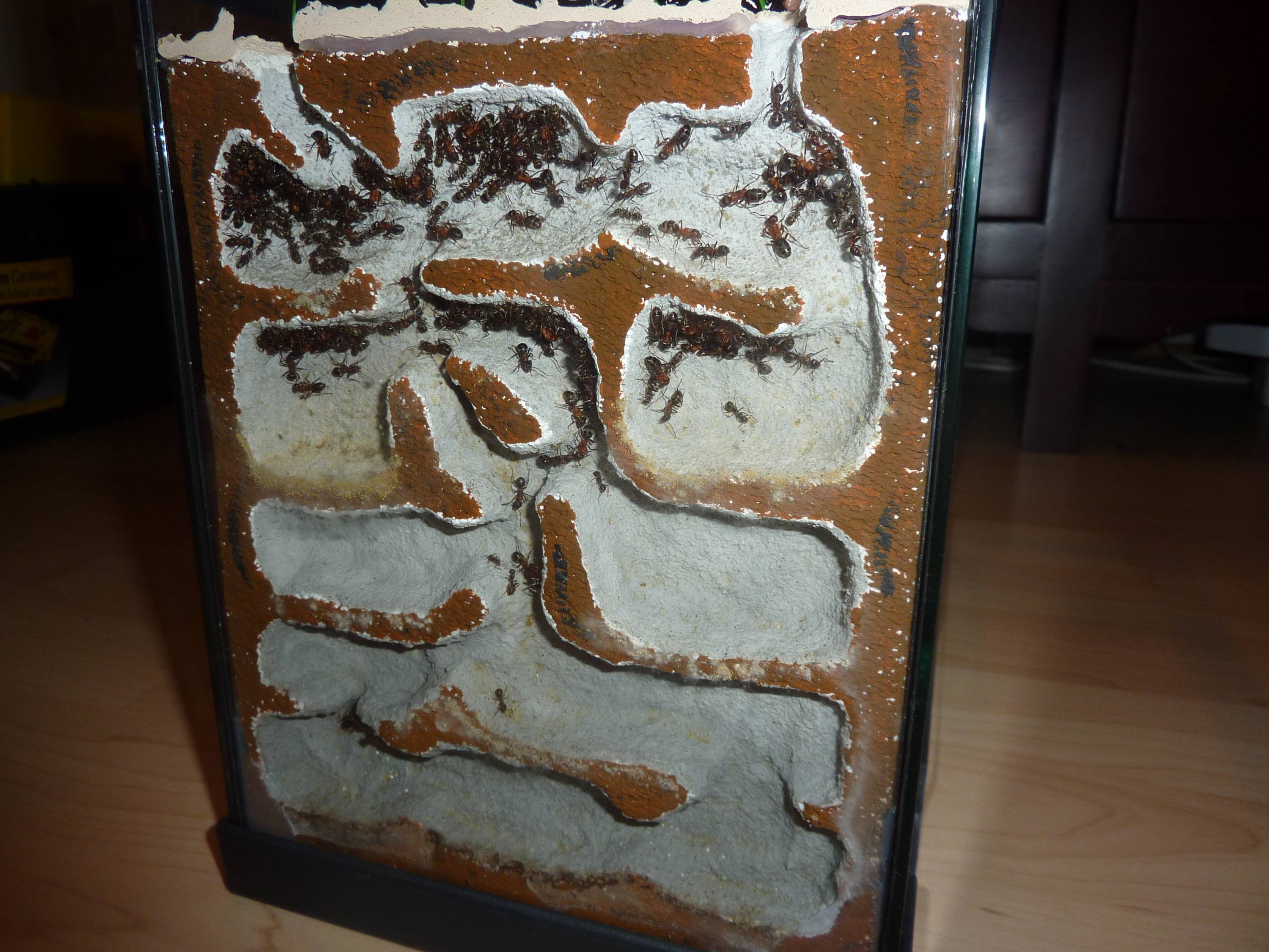 Je vous présente mon 1er terra que j'ai fabriqué il y a 1 mois. Ma colonie de Formica sanguinea, d'une petite centaine de fourmis, y vit depuis un mois, et jusqu'ici tout va bien.