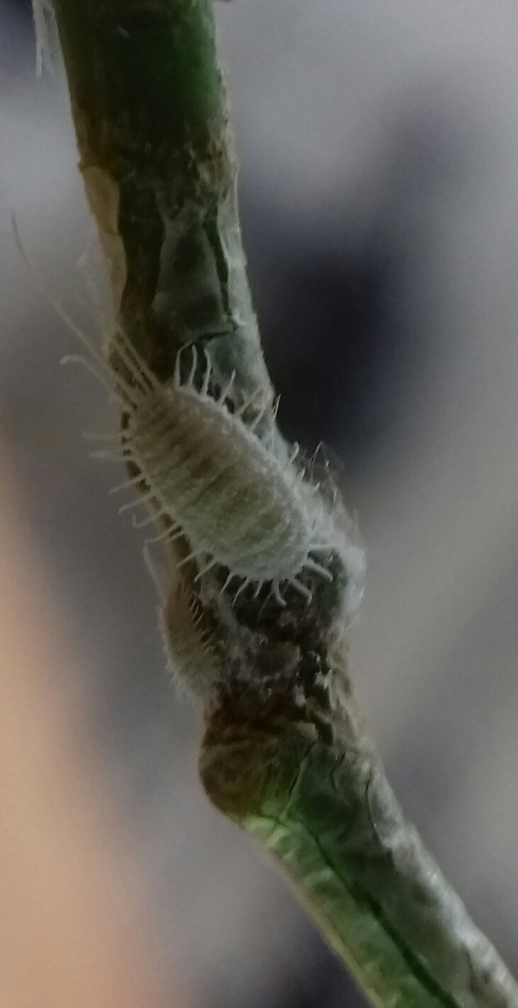 Pseudococcidae asiatique sur un ficus ginseng, c'est un suceur de sève des forêts asiatiques qui est parfois élevé par des fourmis comme les Camponotus dolendus, on l'appelle aussi cochenille farineuse. Qui veut que je teste ^^ ?