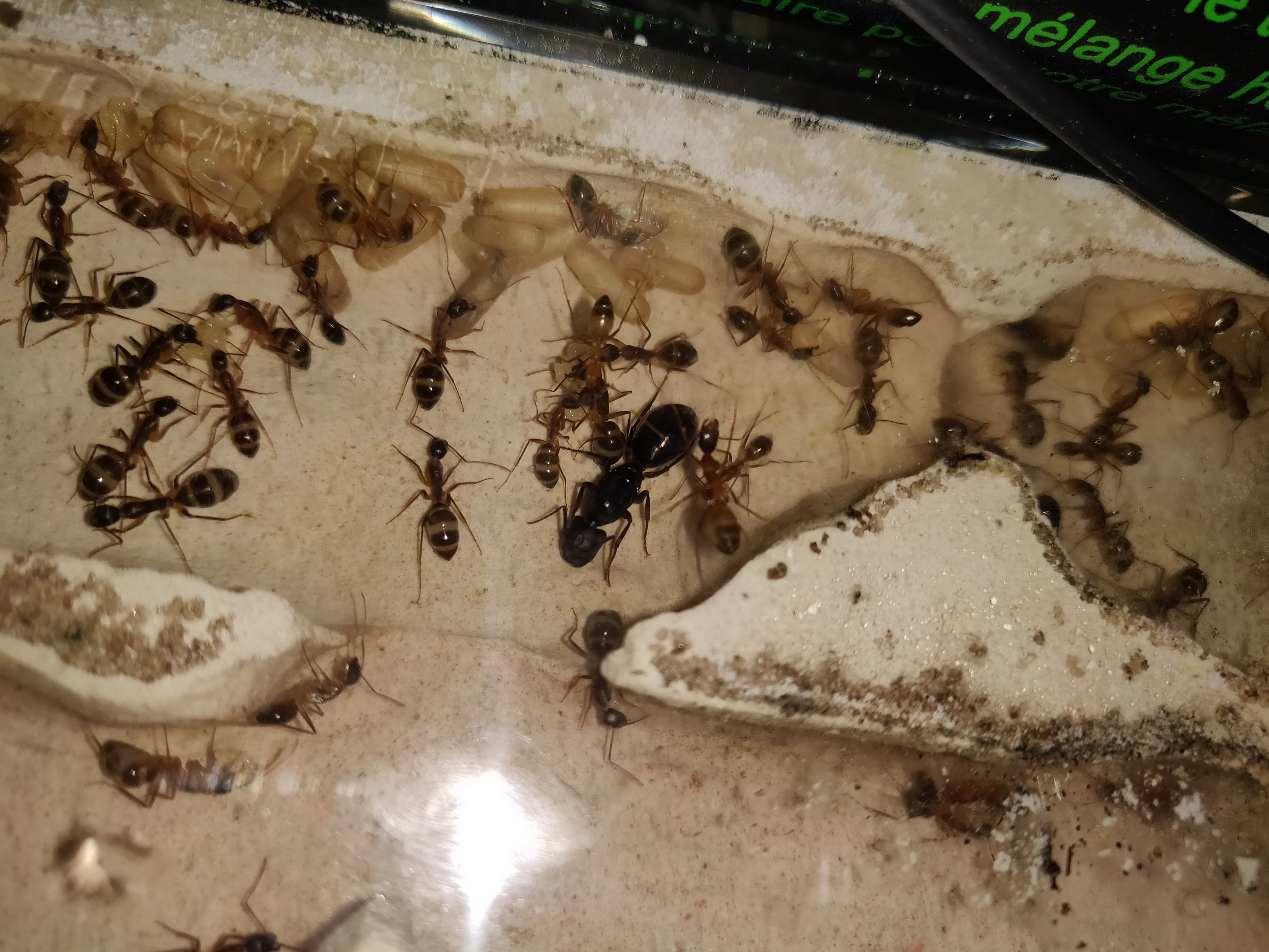 Gyne, ouvrières et couvain de Camponotus fellah.
